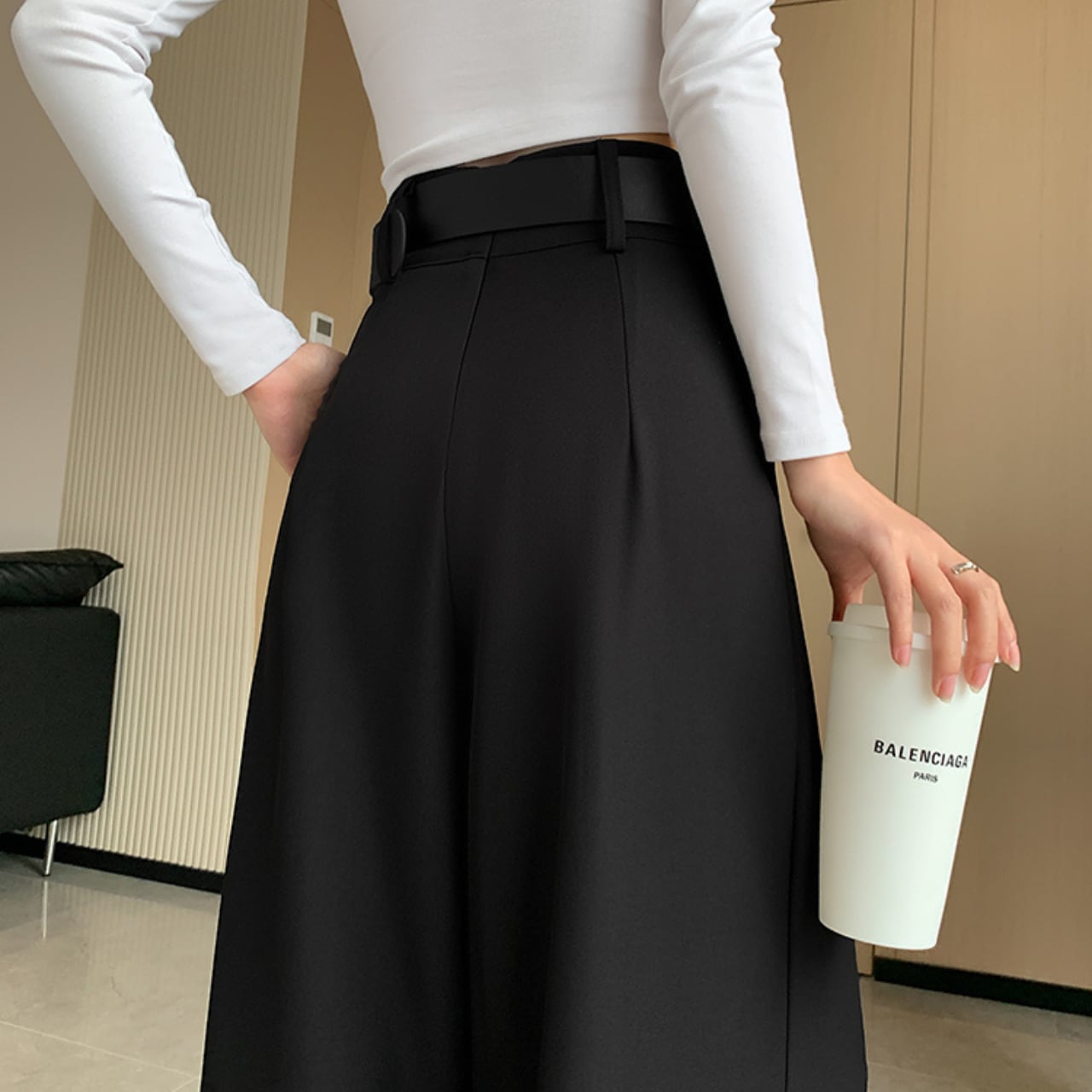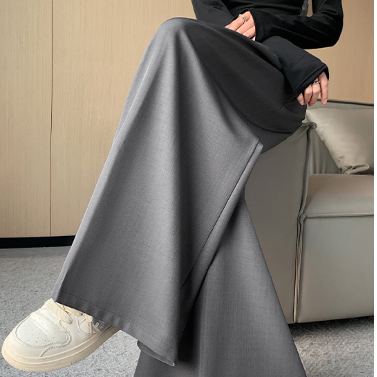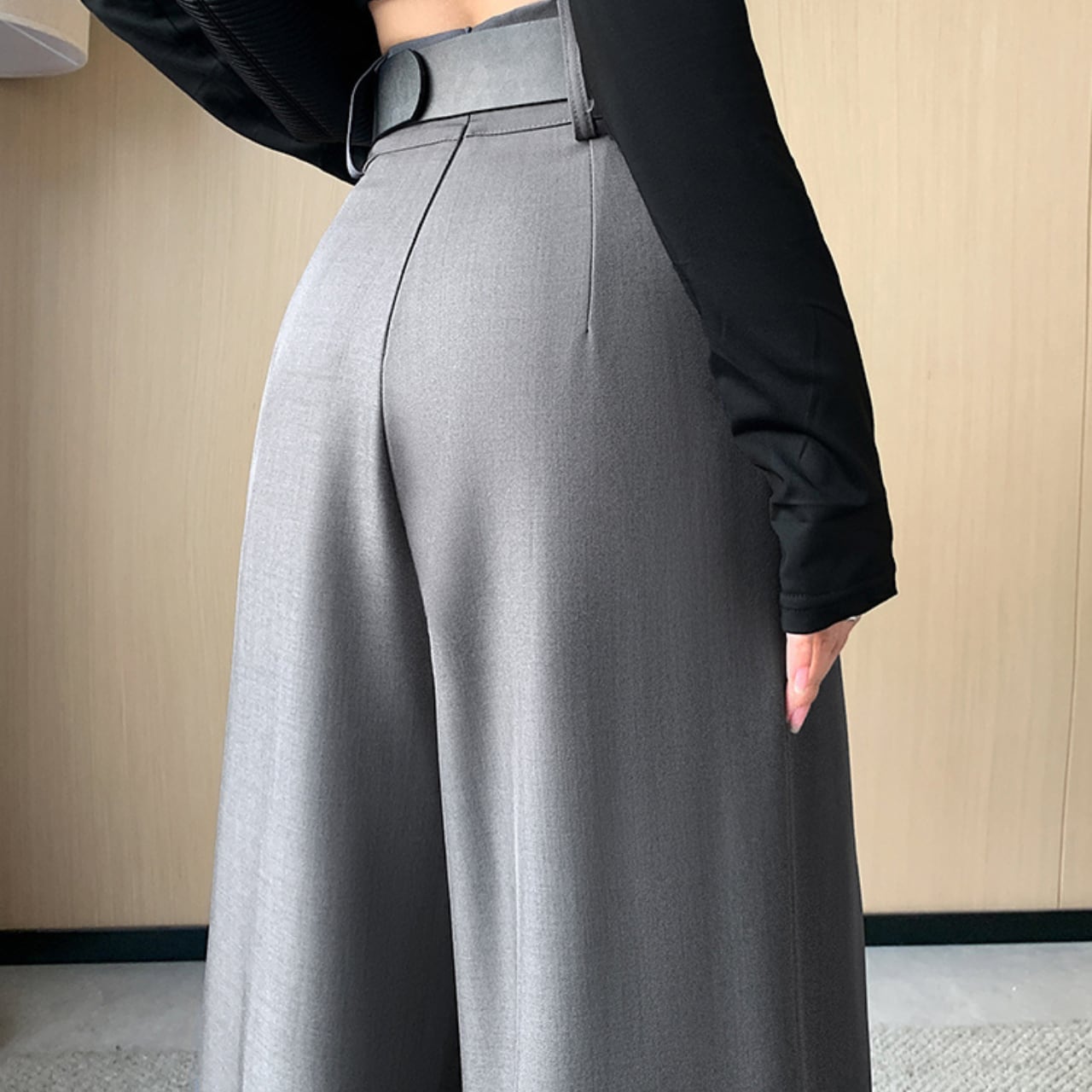 ワイドレッグで体型を気にせず着用でき、リラックスしたはき心地です。