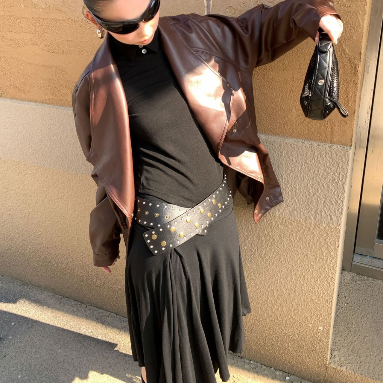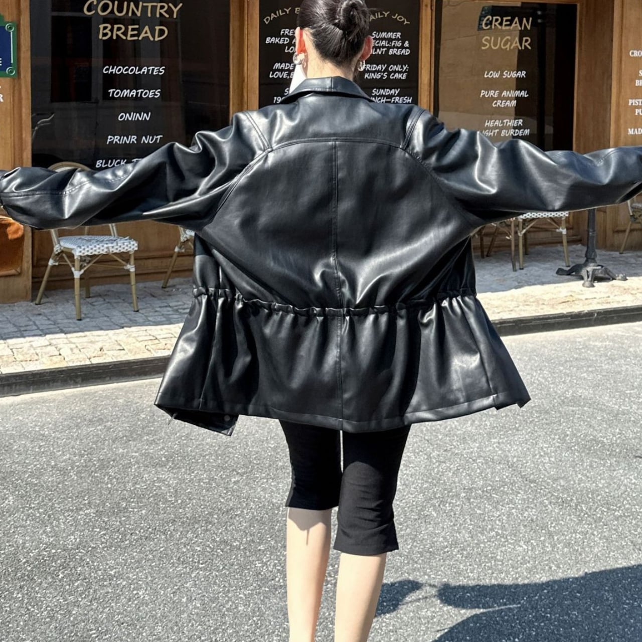 Open Color Fake Leather Jacket L00599