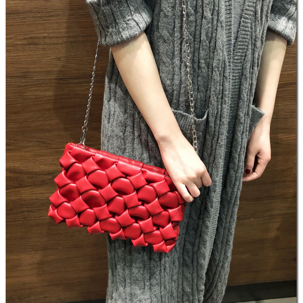 Woven Fake Leather Clutch Bag L00601