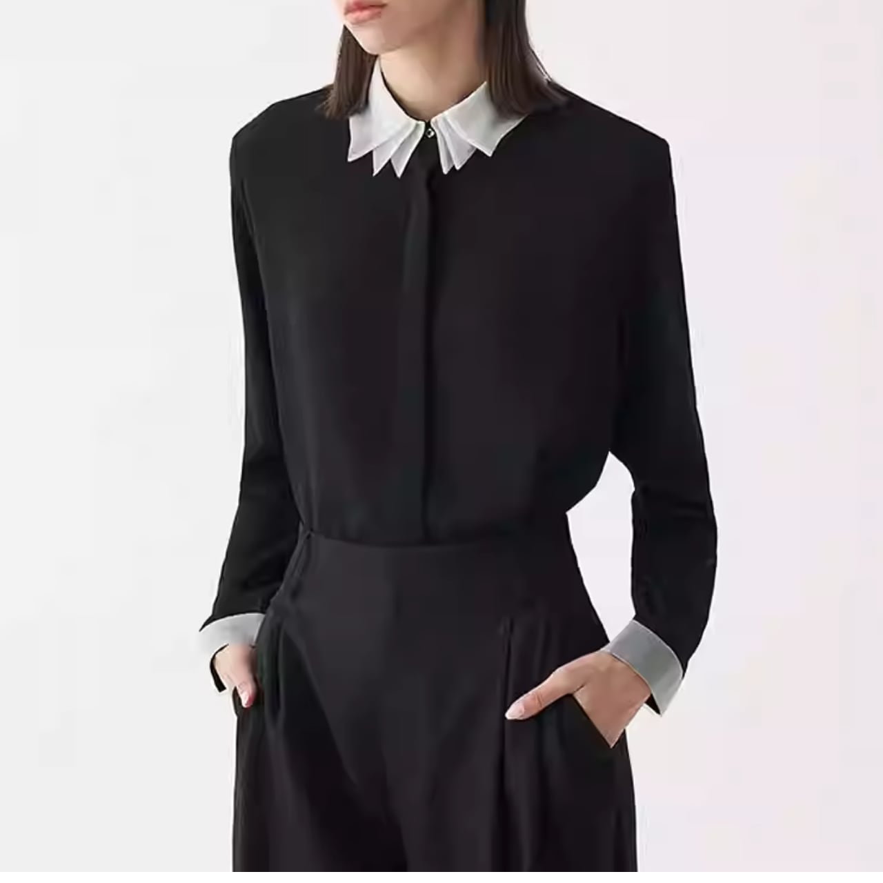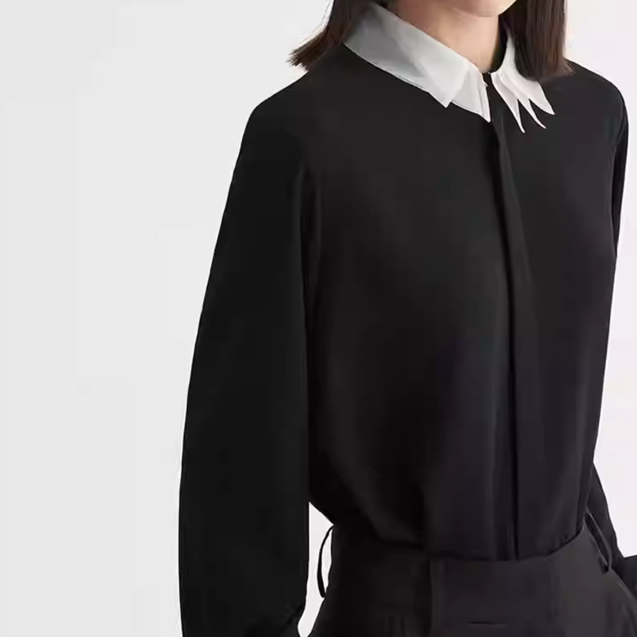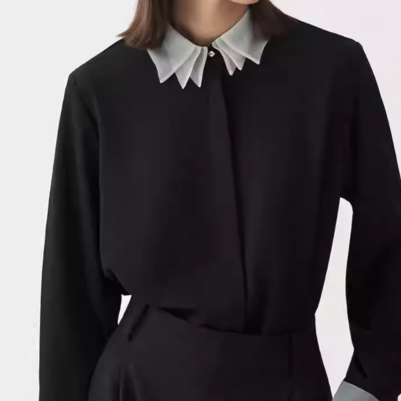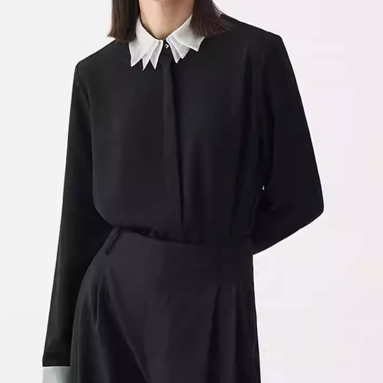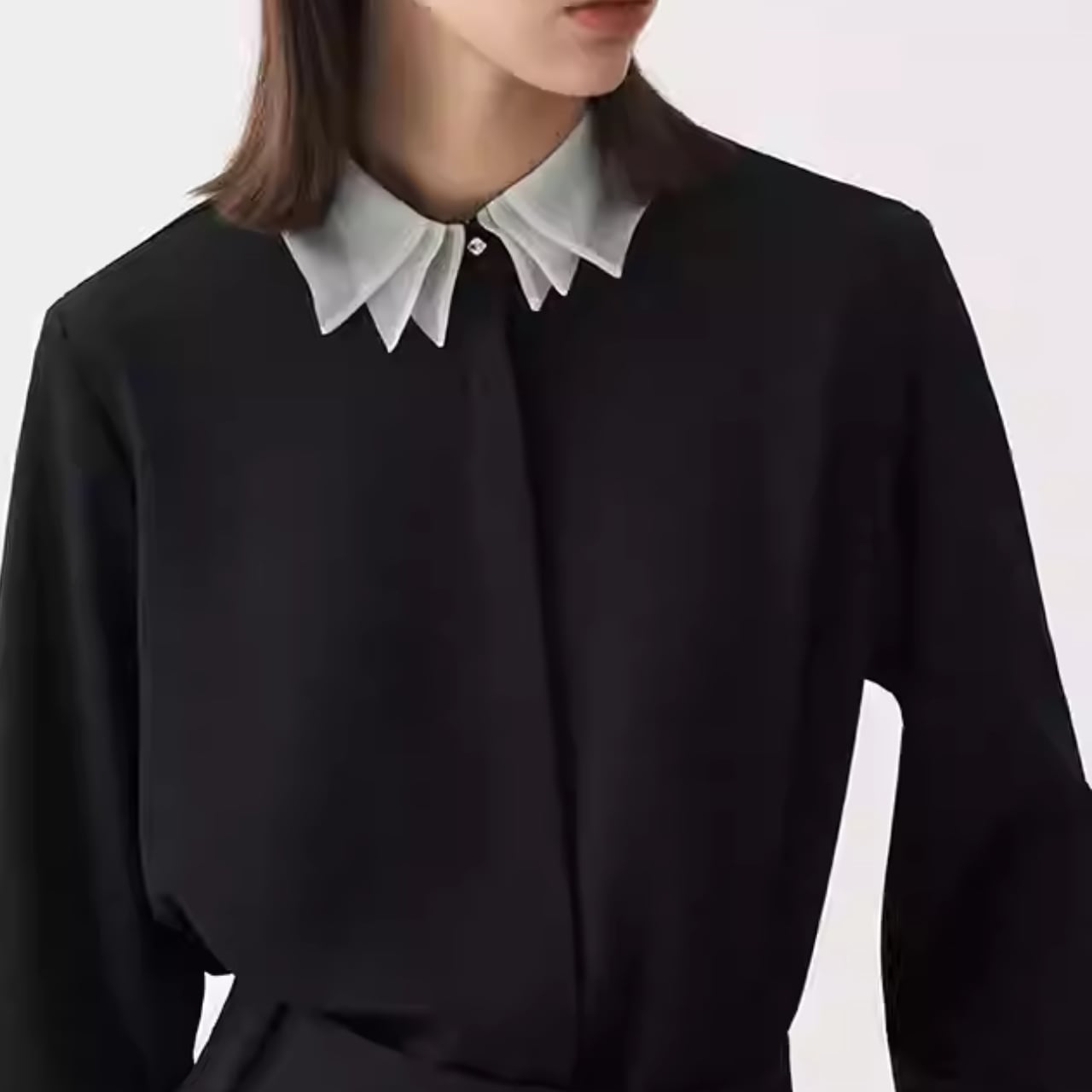 首元のデザインが顔まわりをすっきりと見せてくれます。