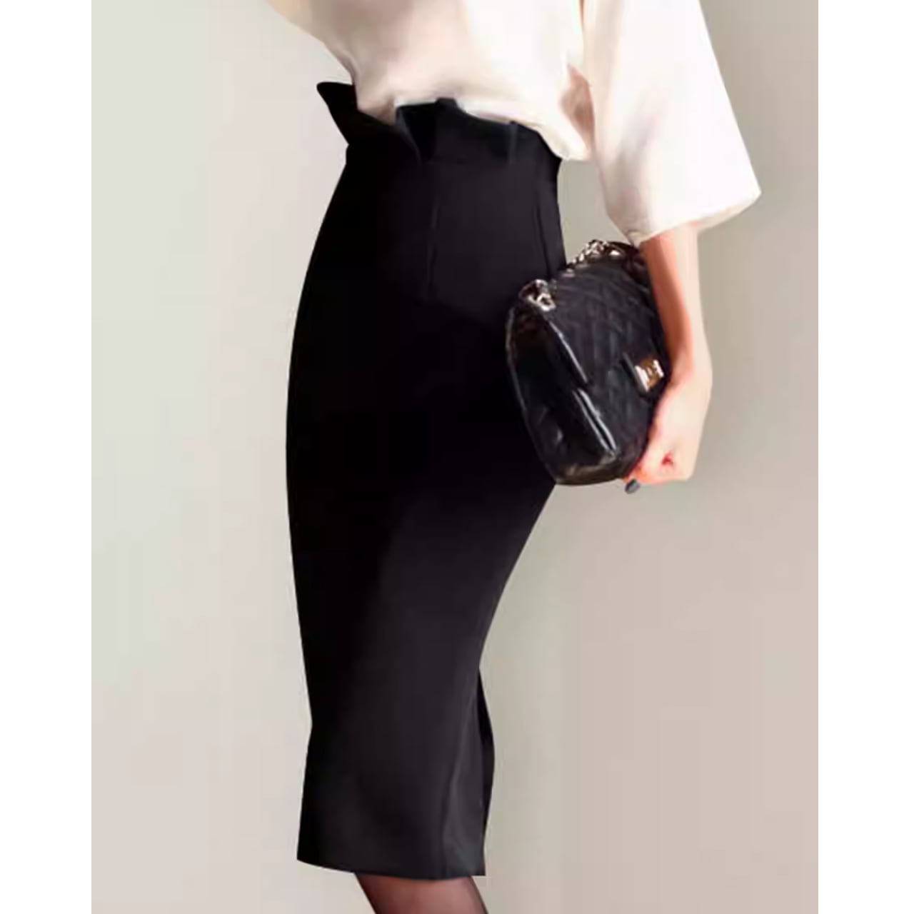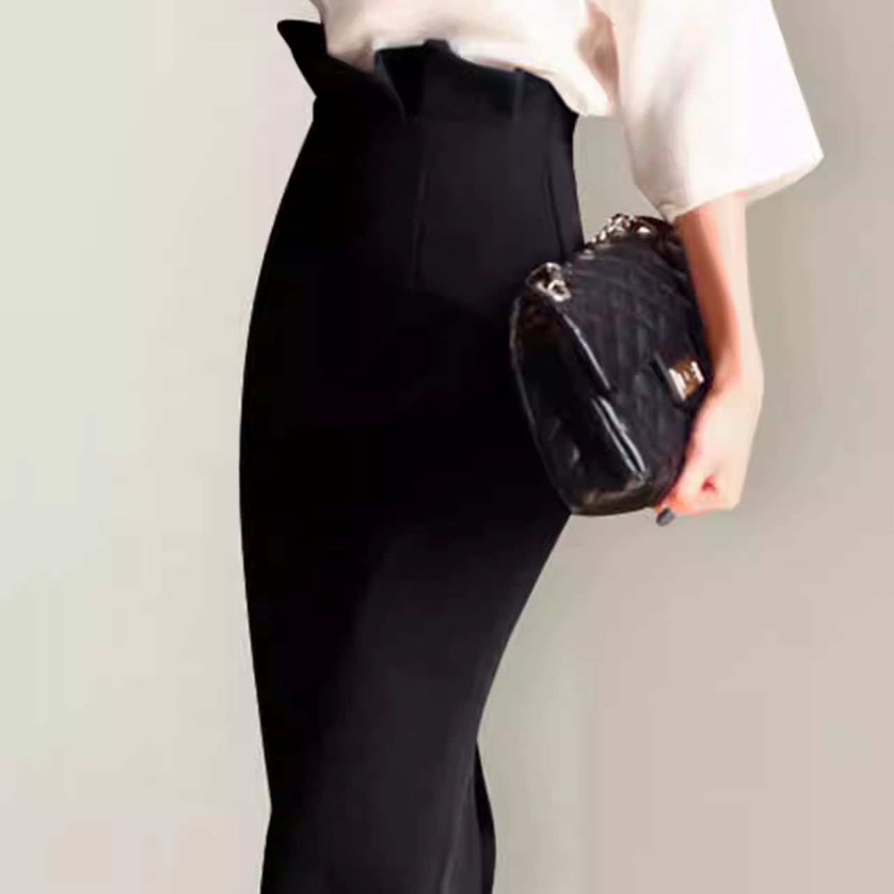 すっきりとしたIラインシルエットで、大人の女性らしさを演出してくれるミディ丈スカート。