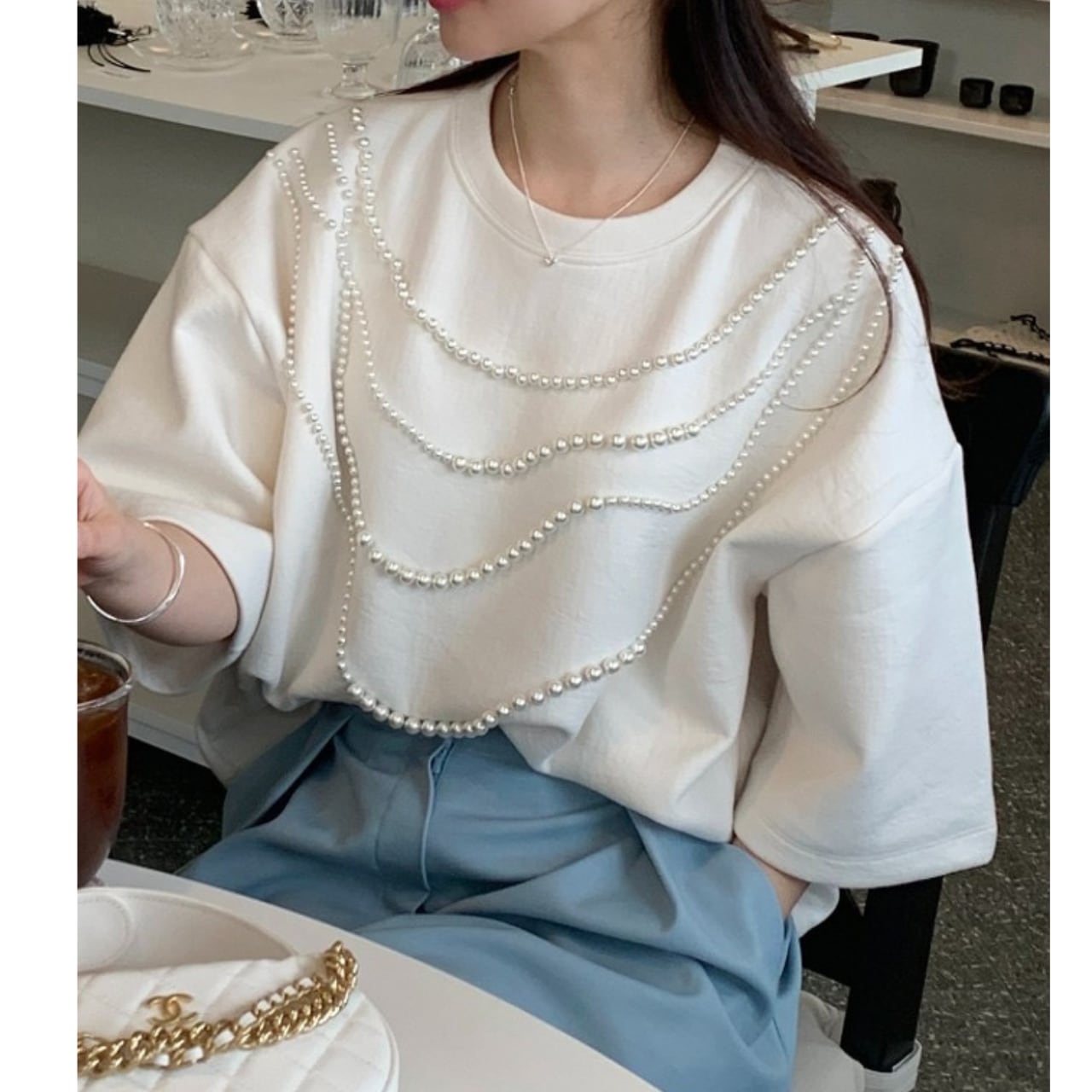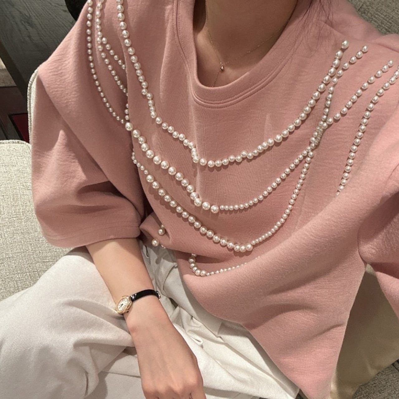 首元をすっきりと見せてくれるので、アクセサリーとの相性も抜群。