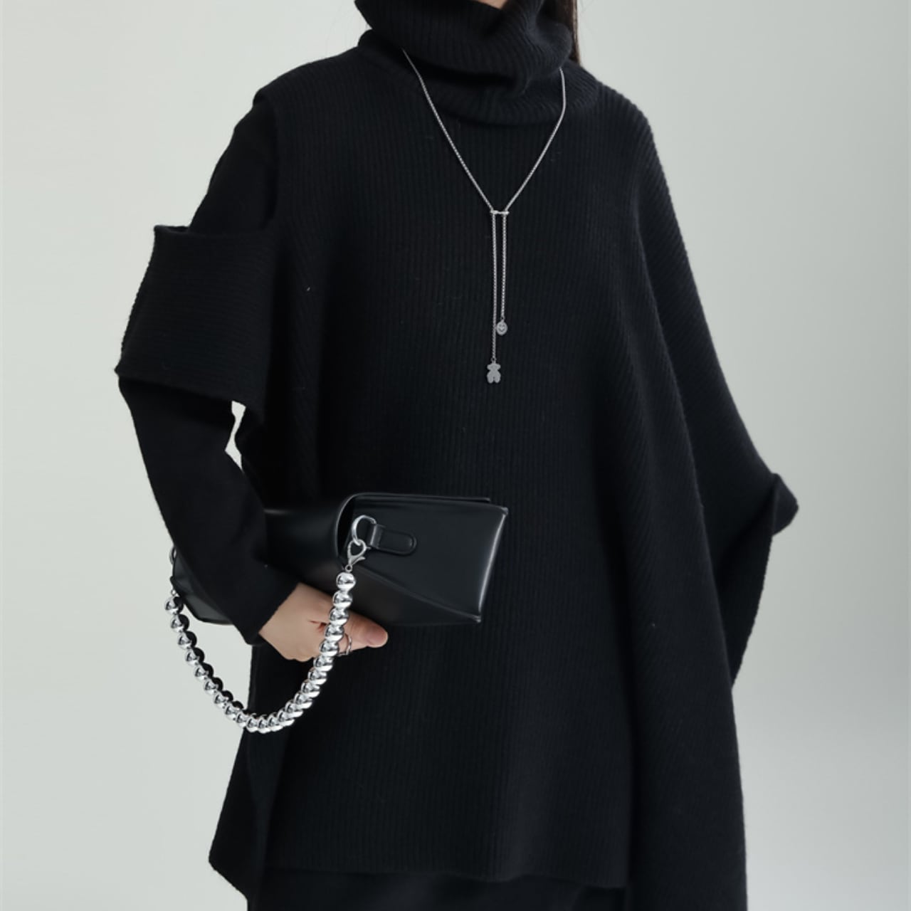 タートルネックが上品さを演出し、落ち着いたカラーが普段使いしやすい一枚です。