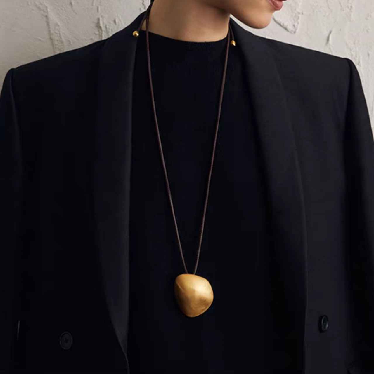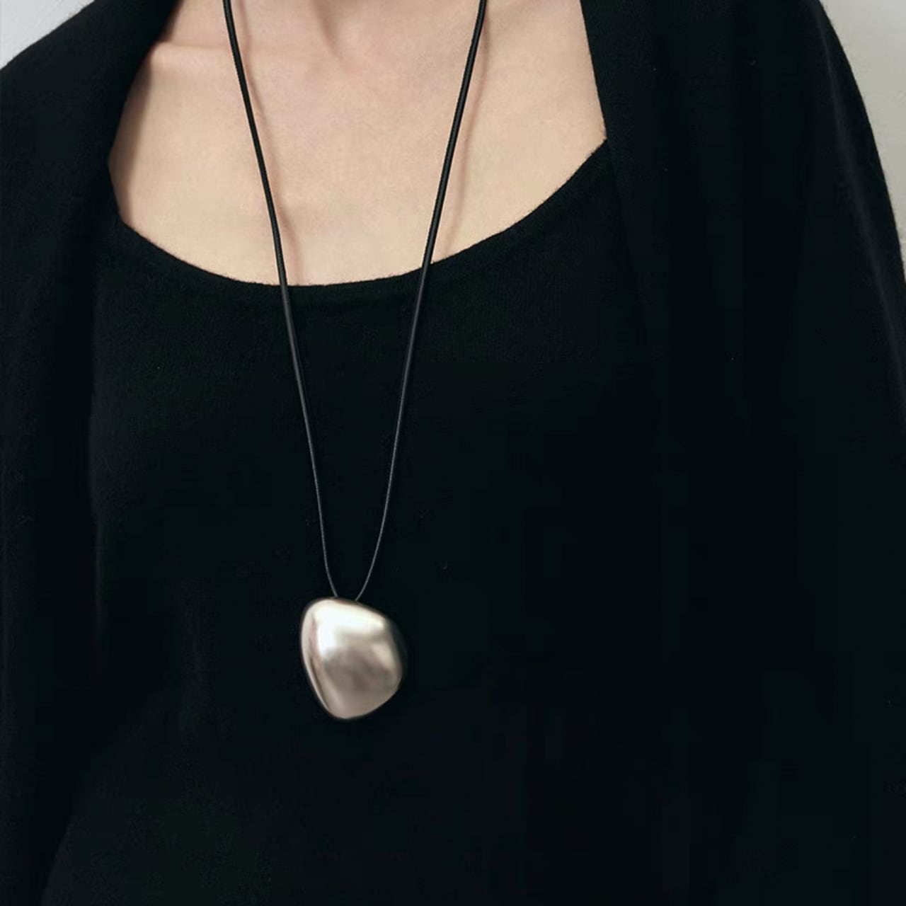首元にさりげないアクセントを添える、ドロップ型のペンダントネックレス。