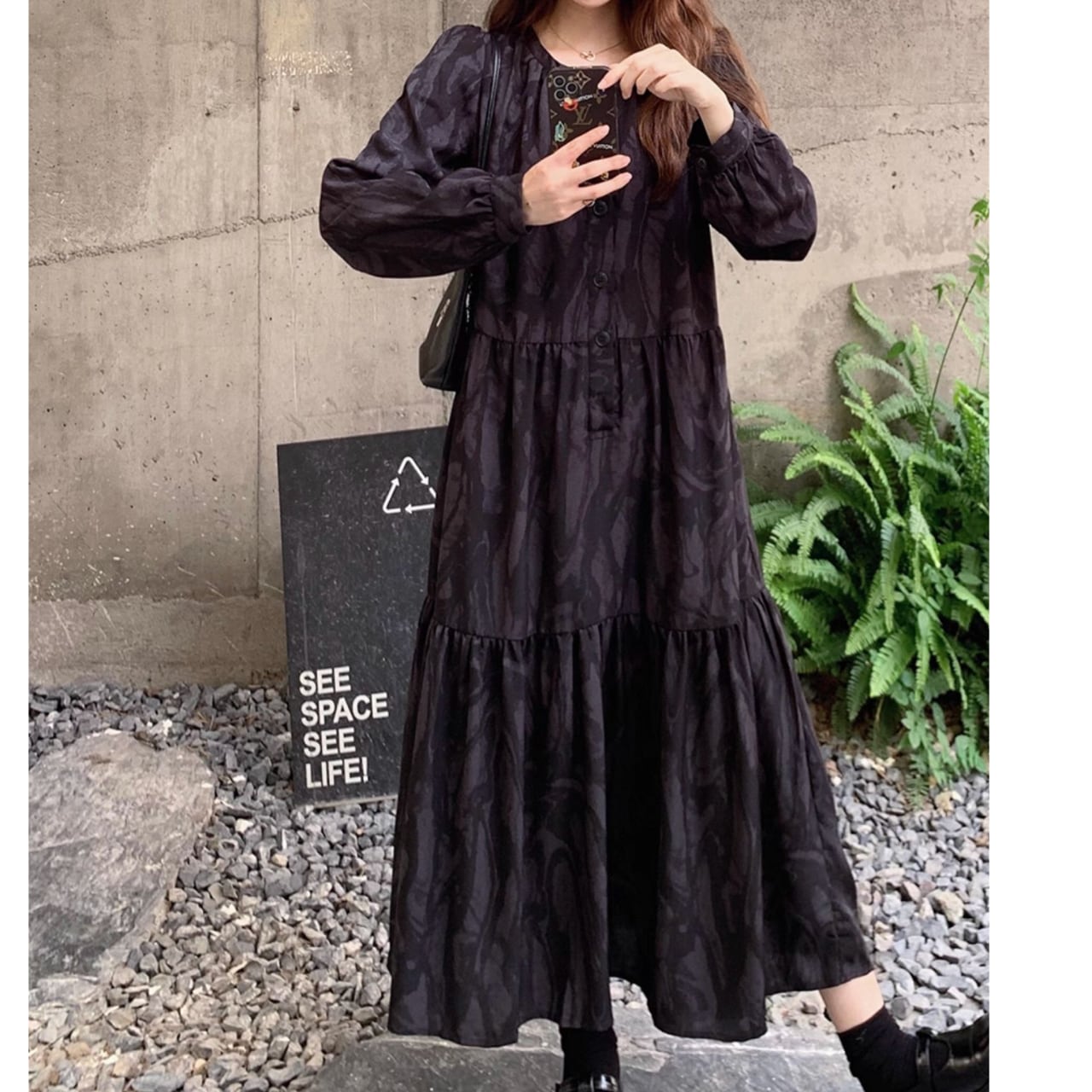 全体にあしらわれたティアードが、動くたびに優雅な雰囲気を演出。