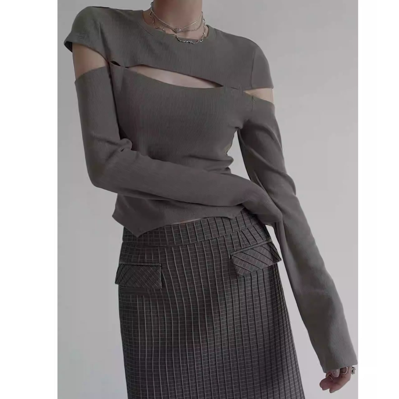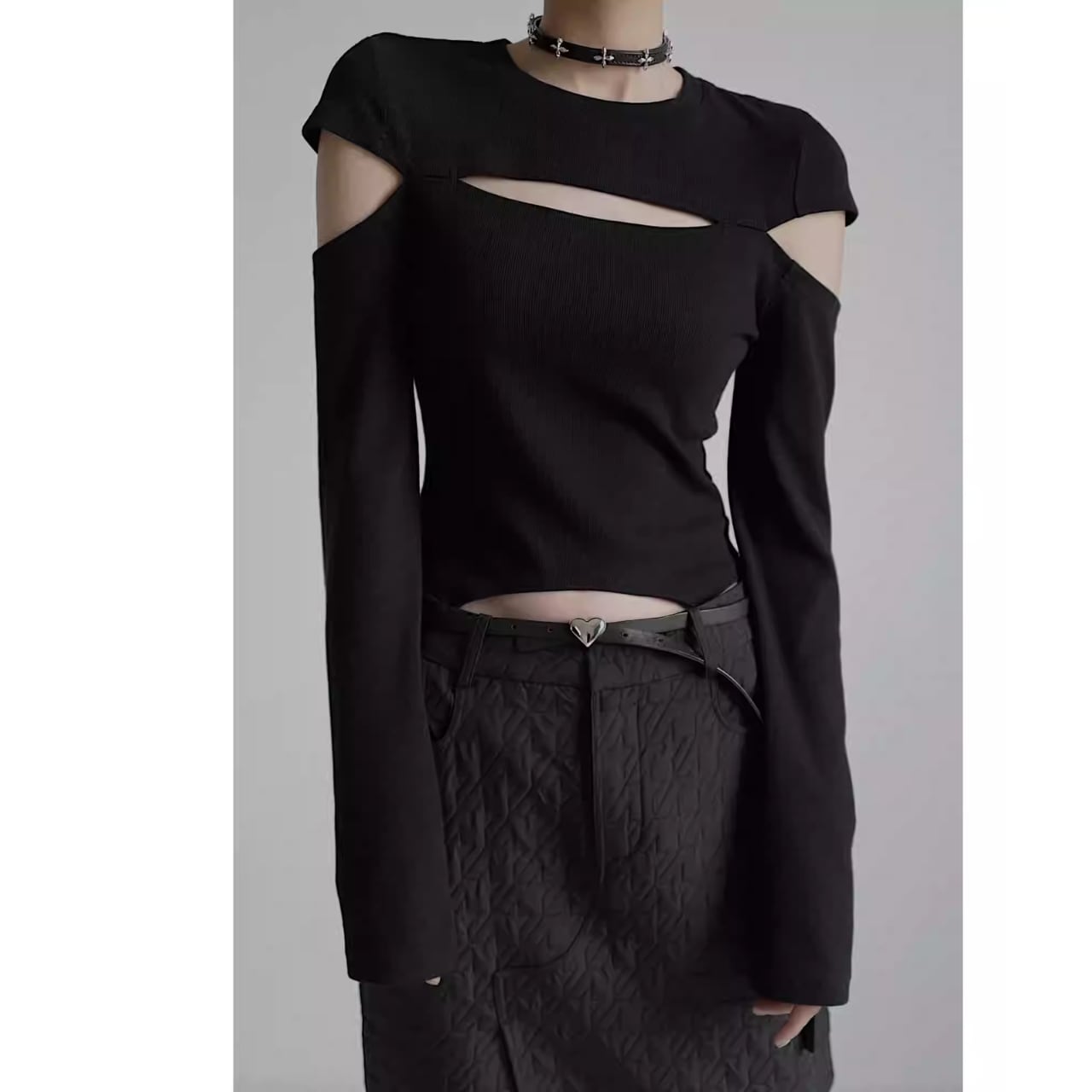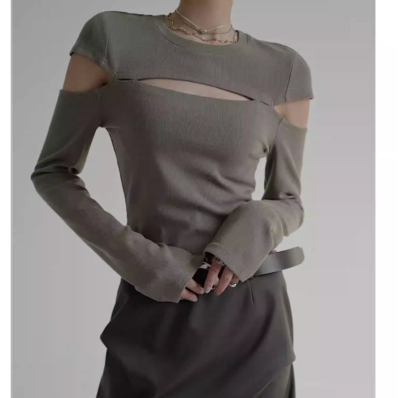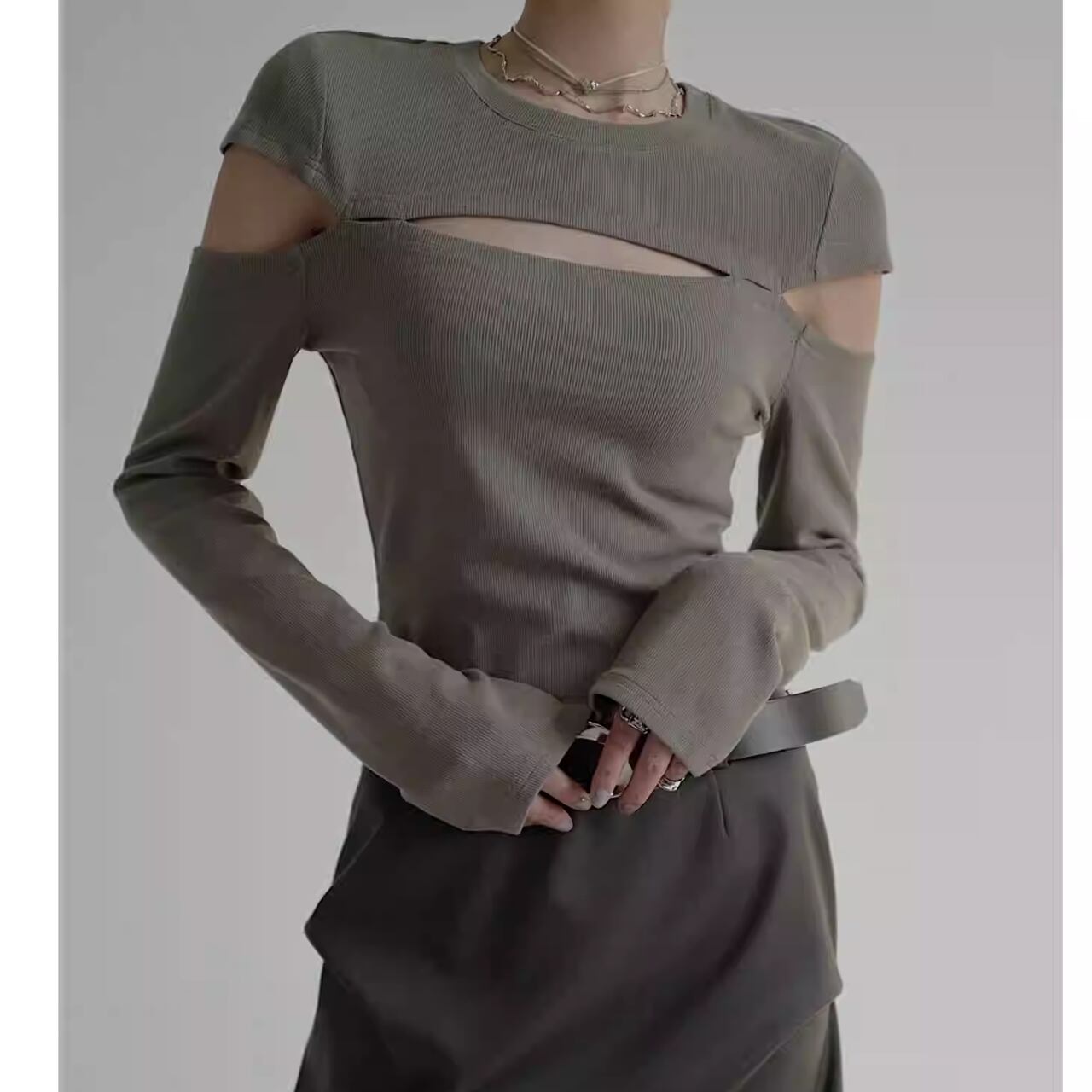 Cut-Out Shoulder Slim Knit Top L00718
