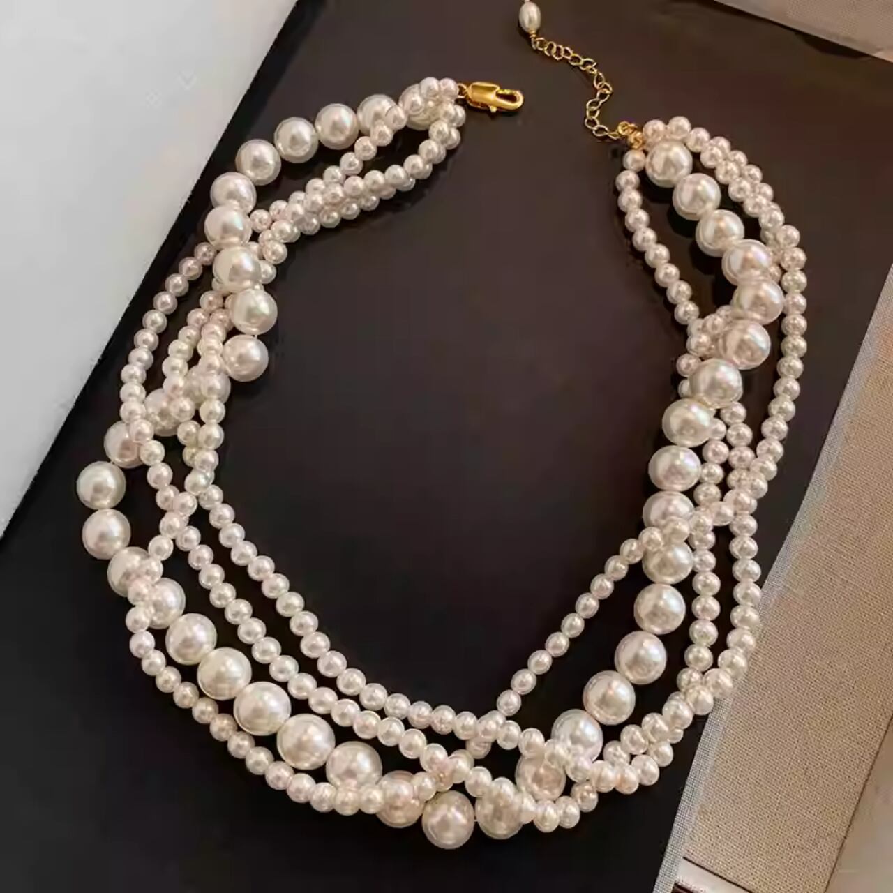 いつもの装いに華やかさをプラスする、レイヤードフェイクパールネックレス。