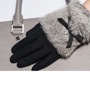 Ribbon-Trim Wool Touchscreen Gloves L00741