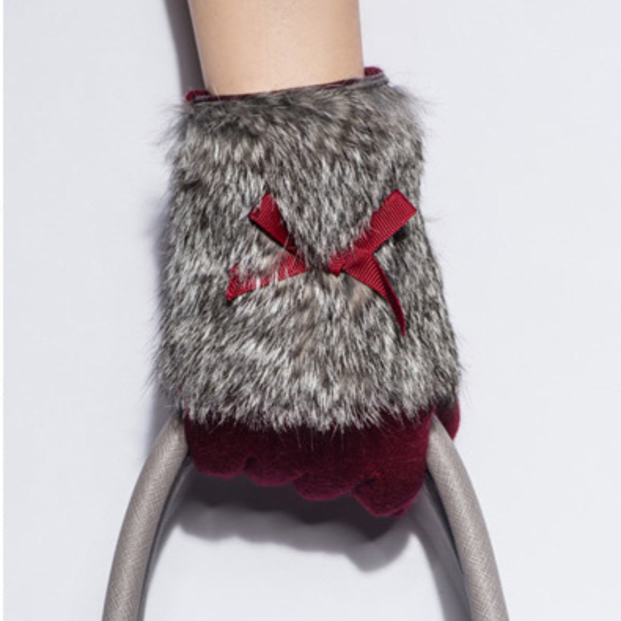 手首部分にはふんわりとしたファー風デザインとリボンをあしらい、