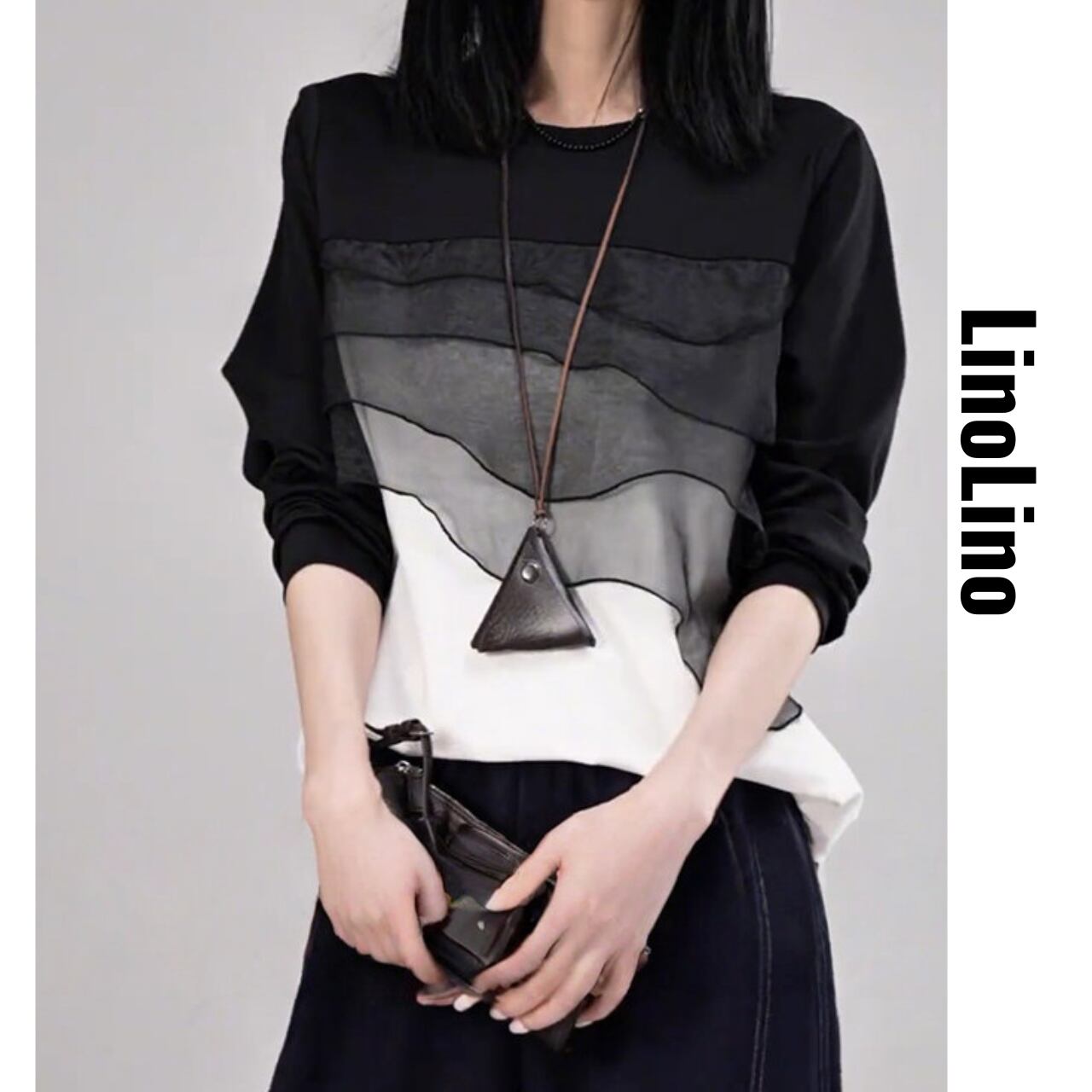 印象的なデザインが目を惹く七分袖トップスは、普段の装いをワンランク上に見せてくれます。