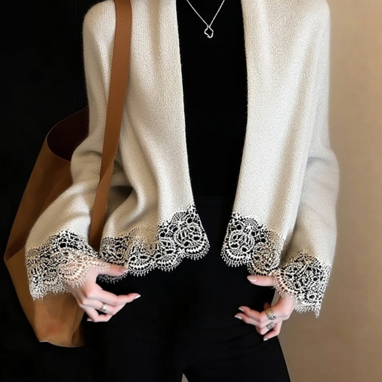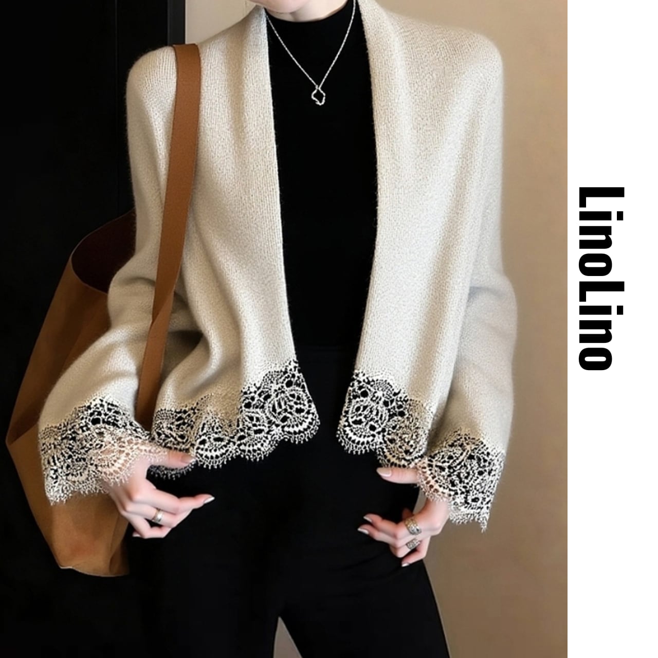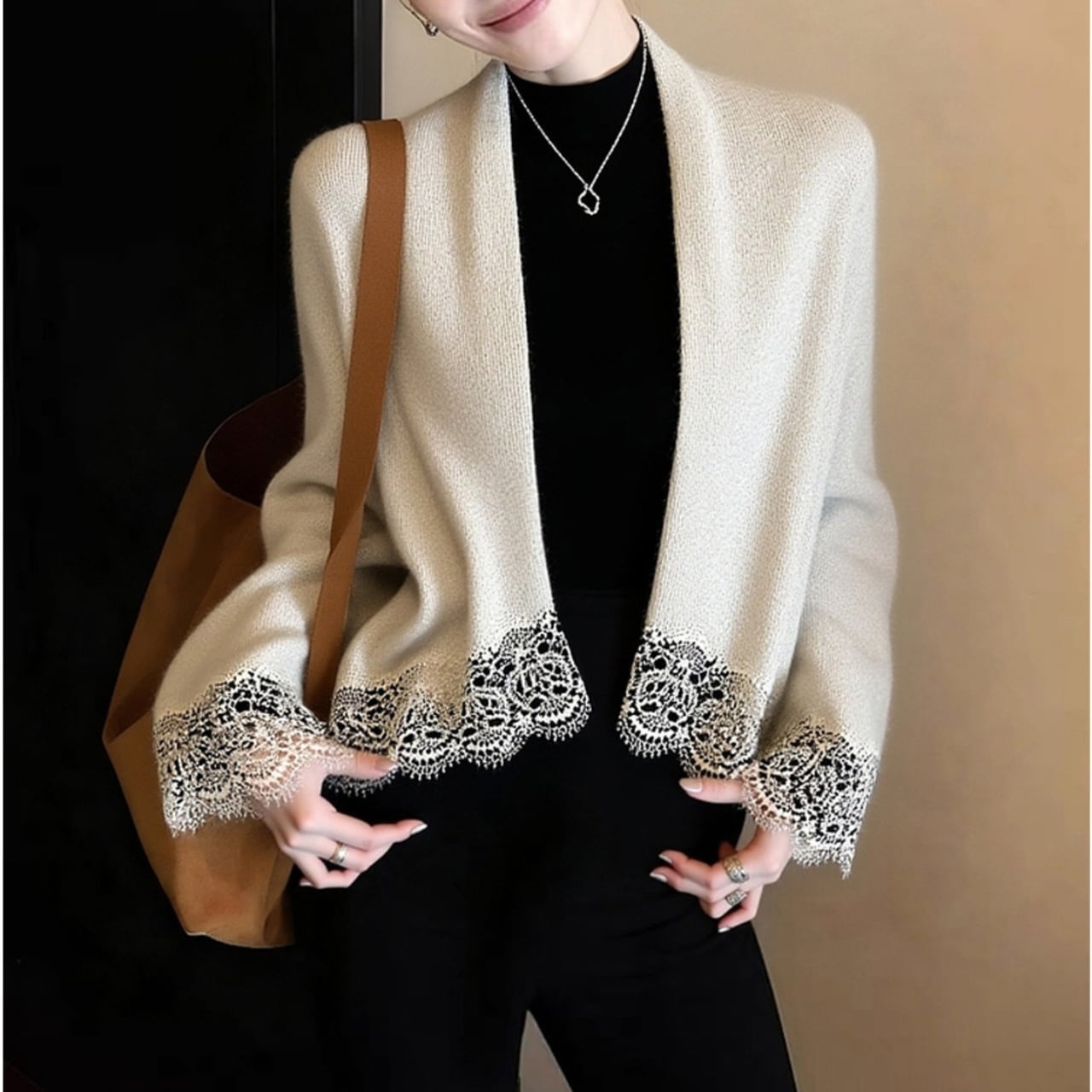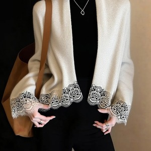 裾と袖口に施されたレースディテールが、シンプルなコーディネートに程よい華やかさをプラス。インナーにはタートルネックやカットソーを合わせるだけで、洗練された大人スタイルが完成します。