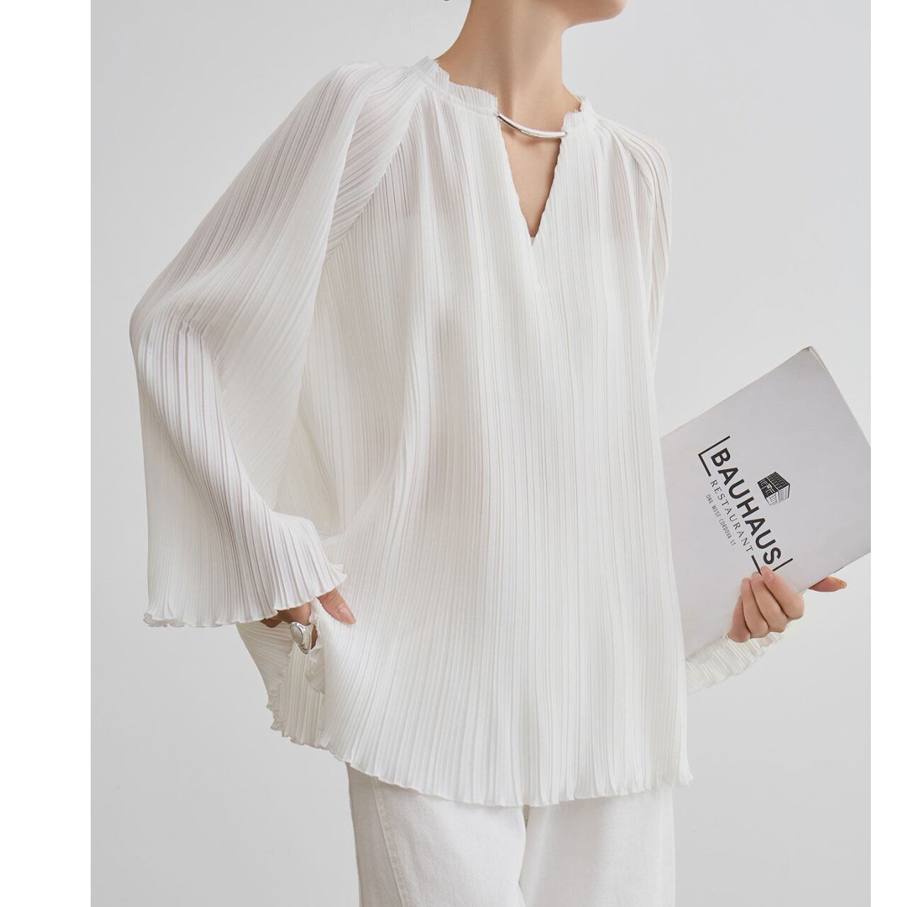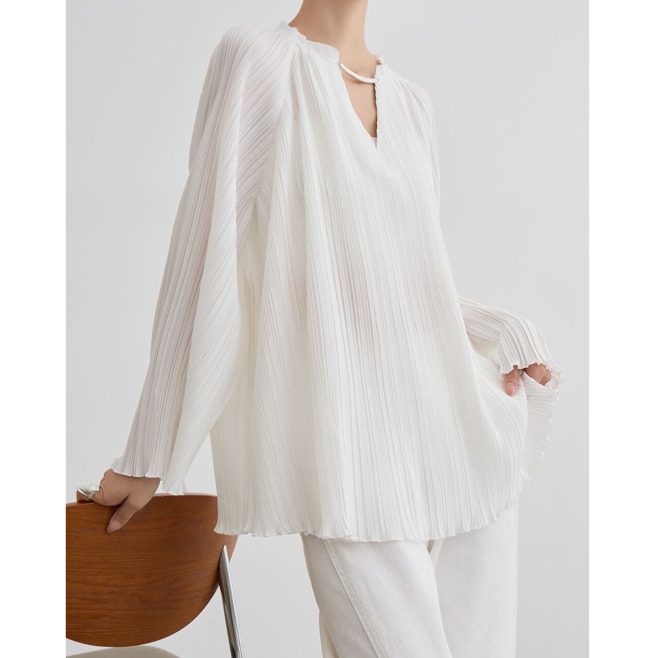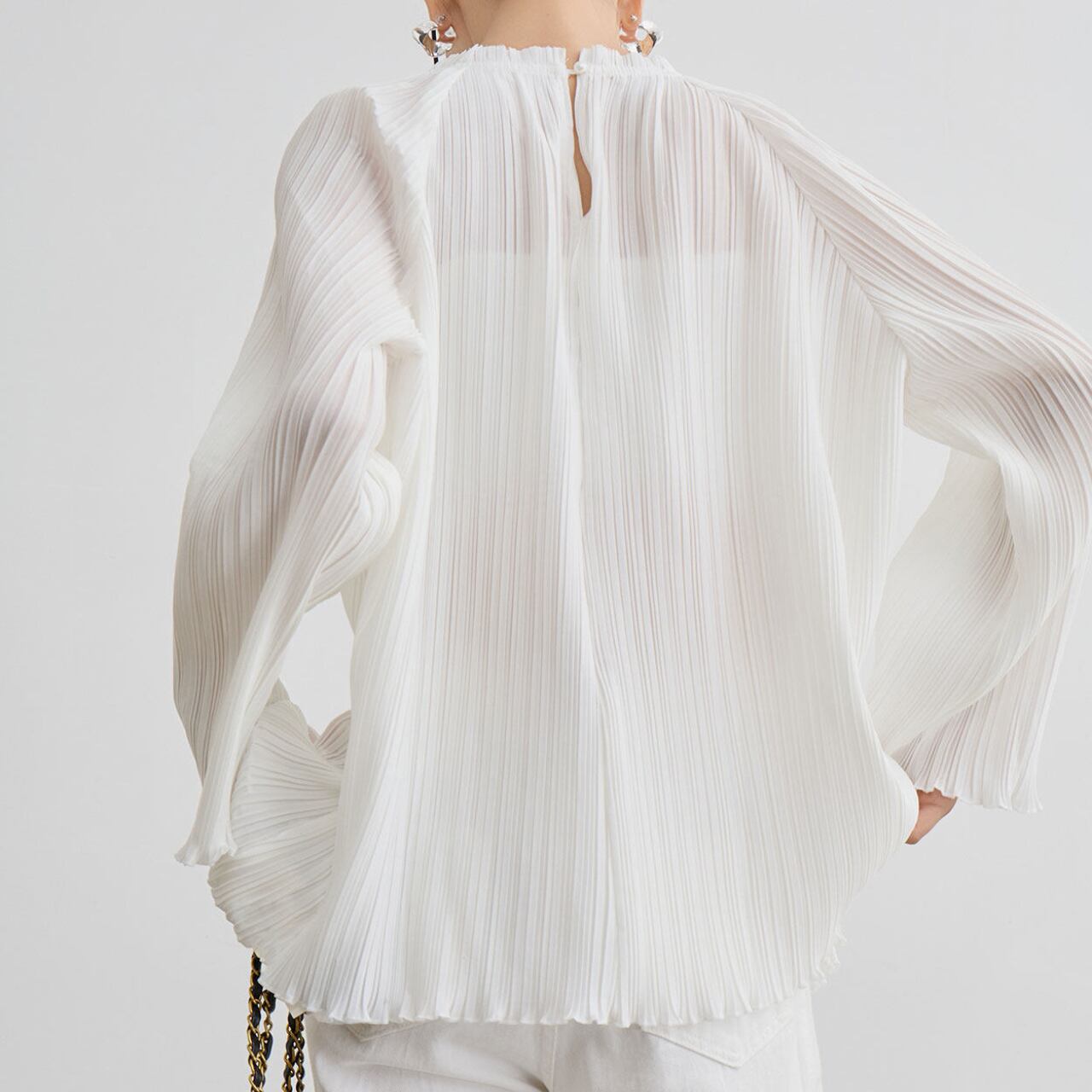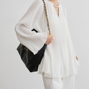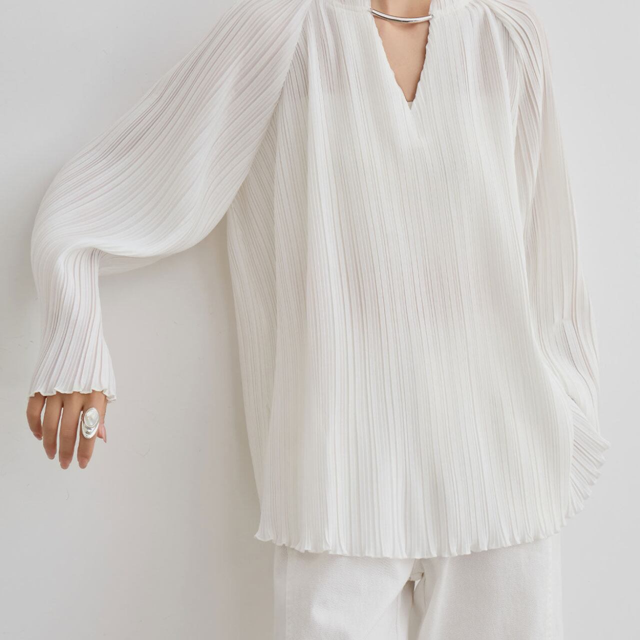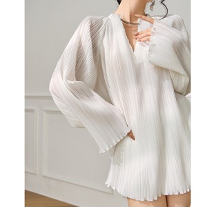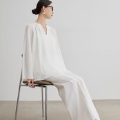 ゆったりとした長袖で、気になる二の腕もふんわりカバー。