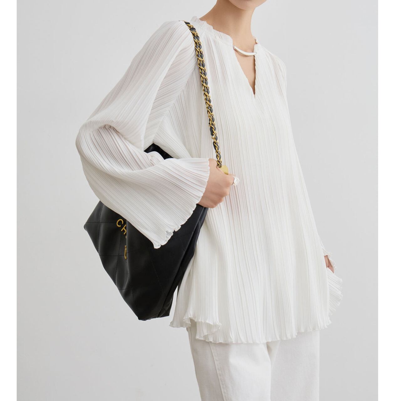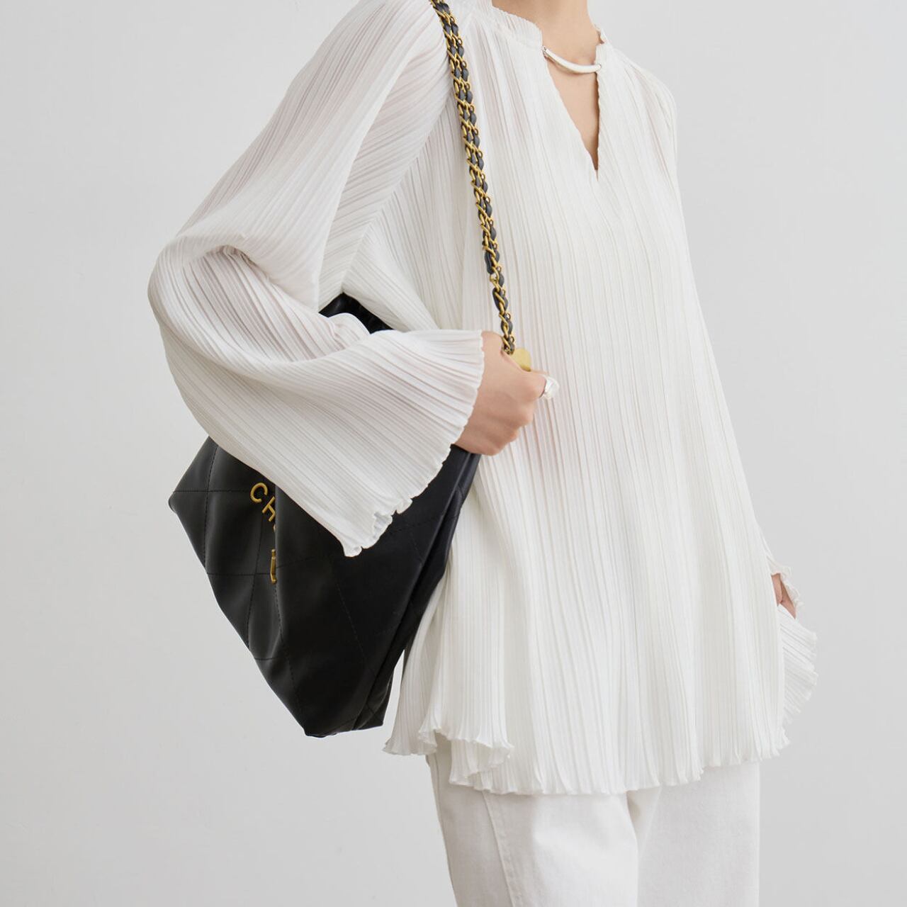 ふんわりとしたシルエットが魅力。気になる部分をさりげなくカバーしつつ、上品な印象を与えます。