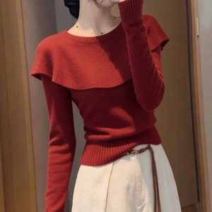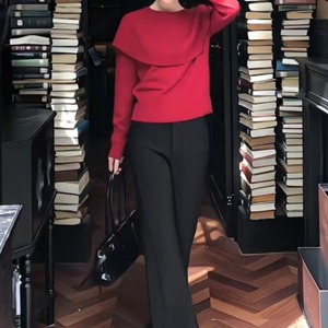 着るだけで華やかさをプラスする、長袖のクロップドニット。