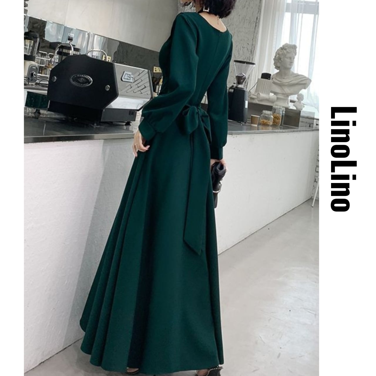 Back Ribbon Long Sleeve A-Line Maxi Dress L00764