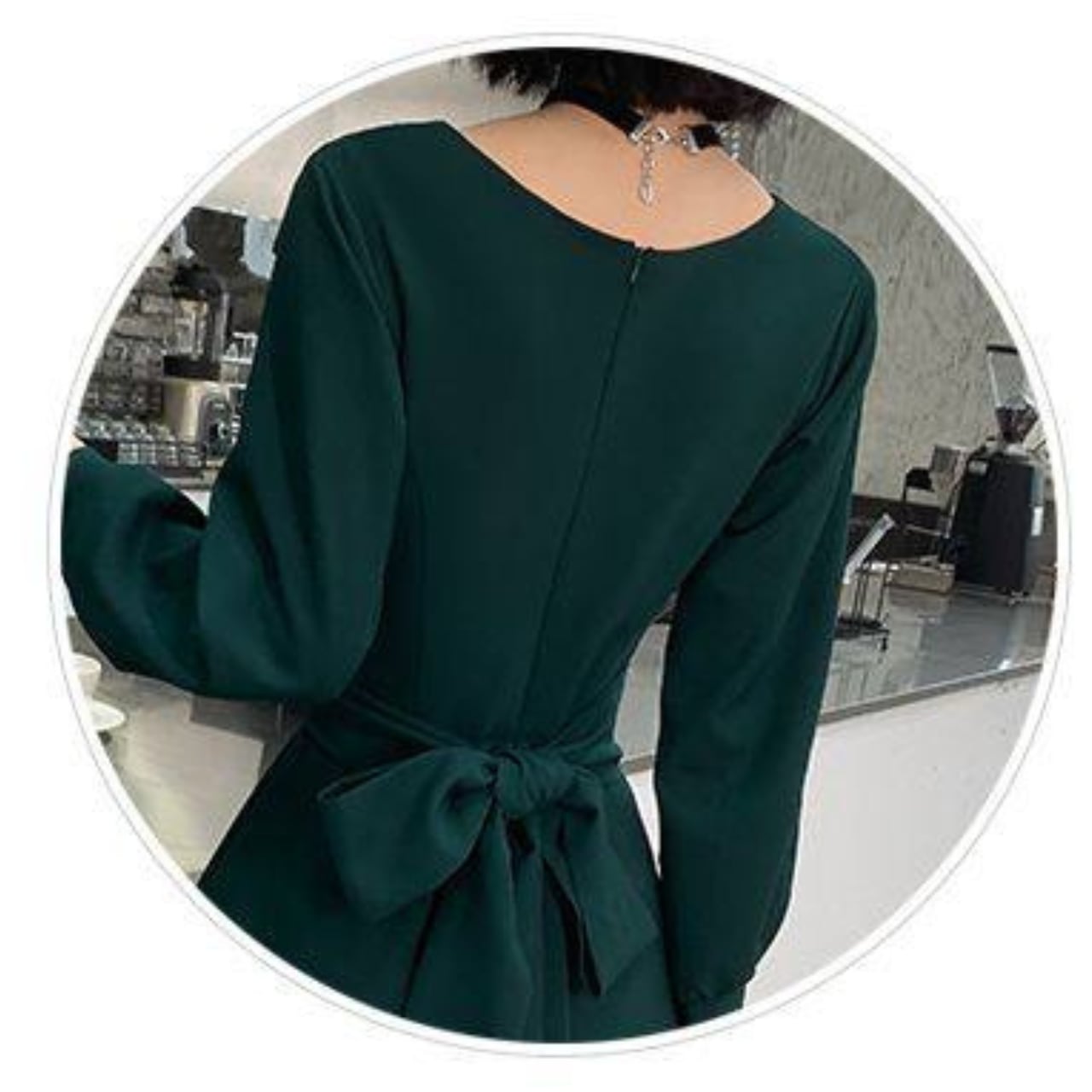 背中のリボンがアクセントとなり、さりげない可愛らしさをプラス。