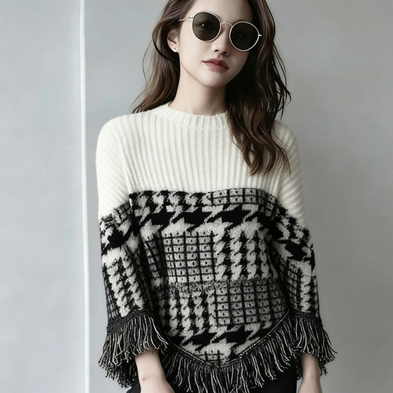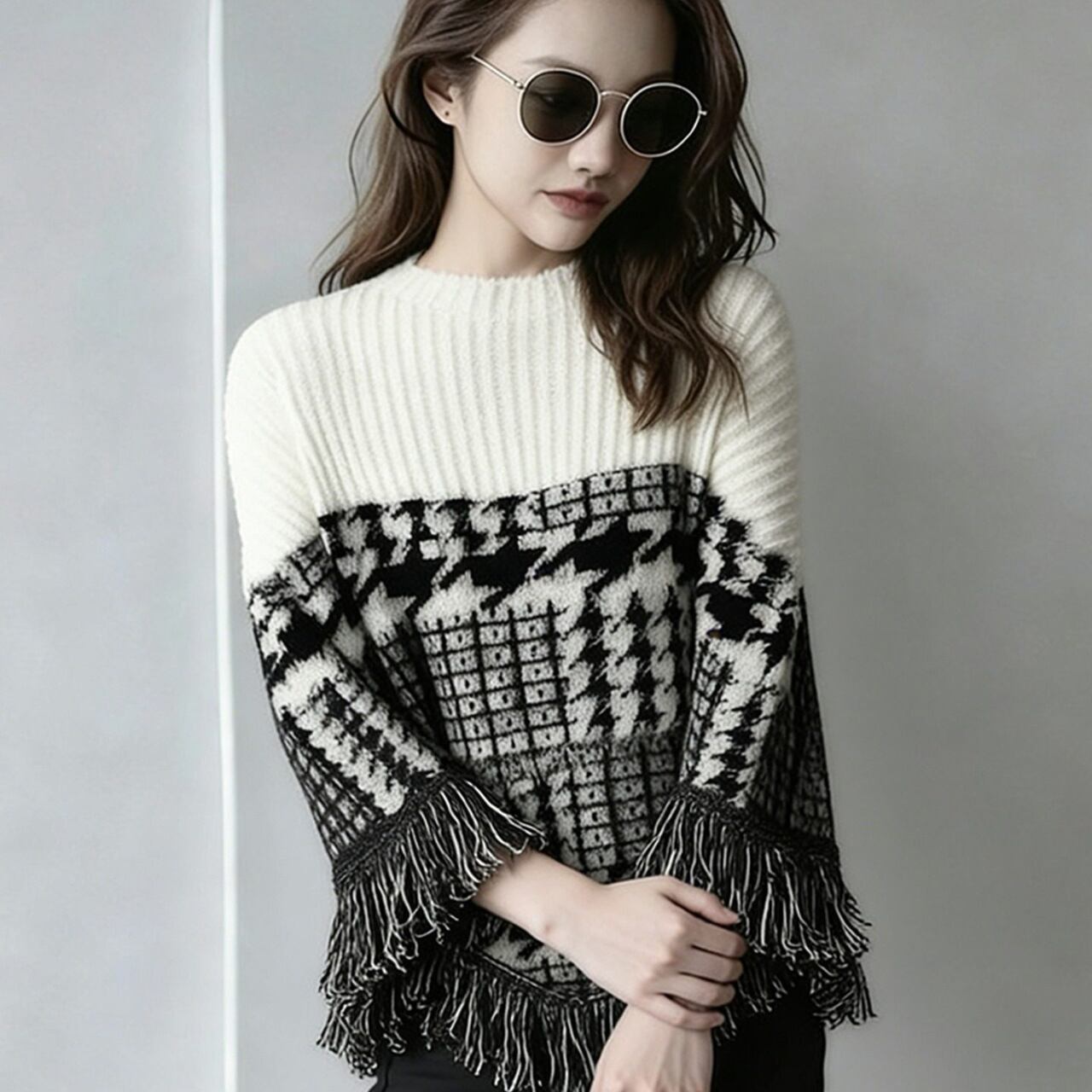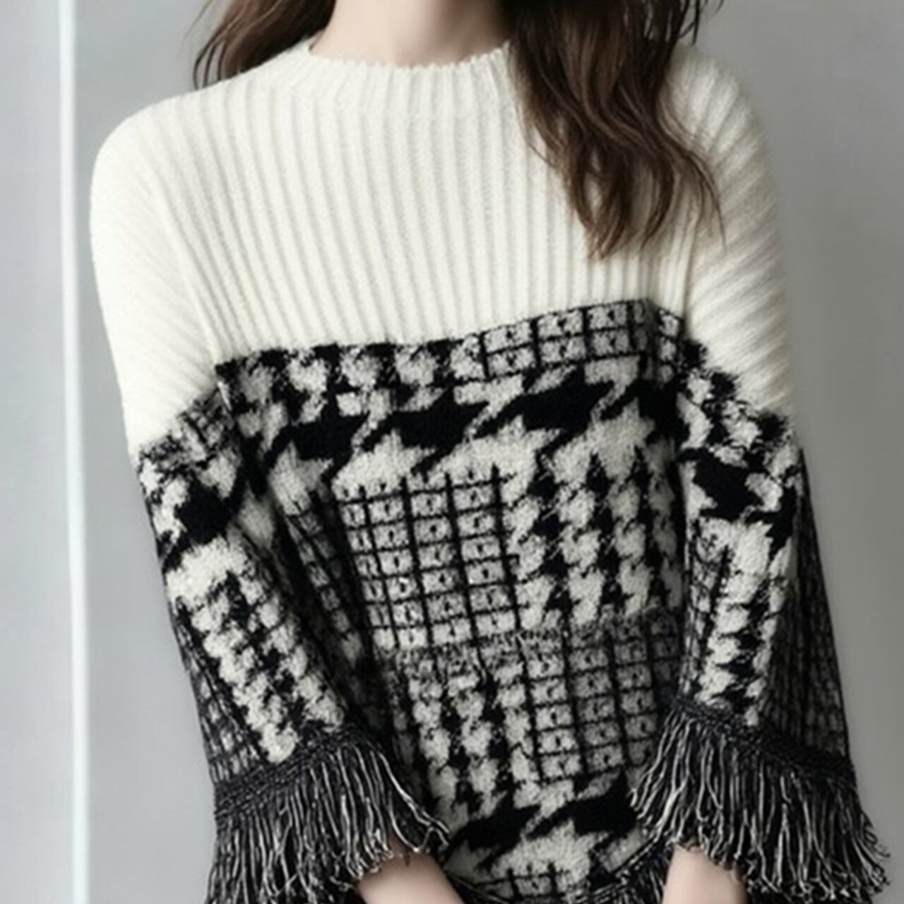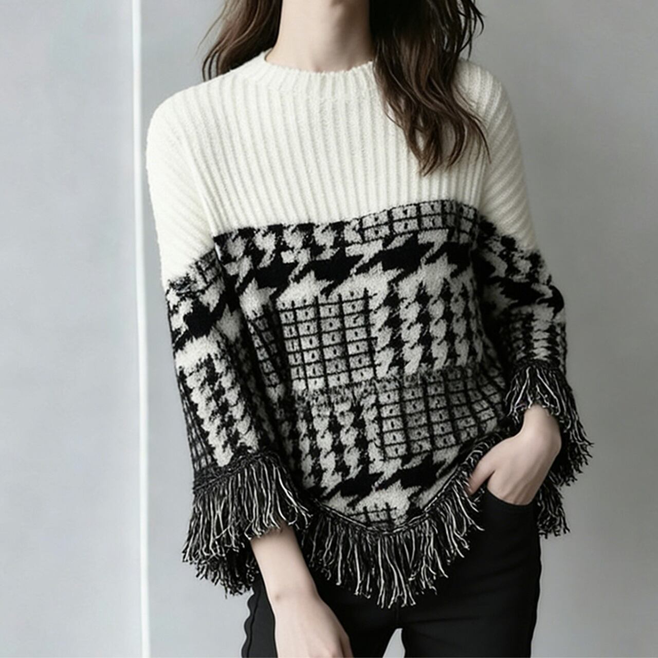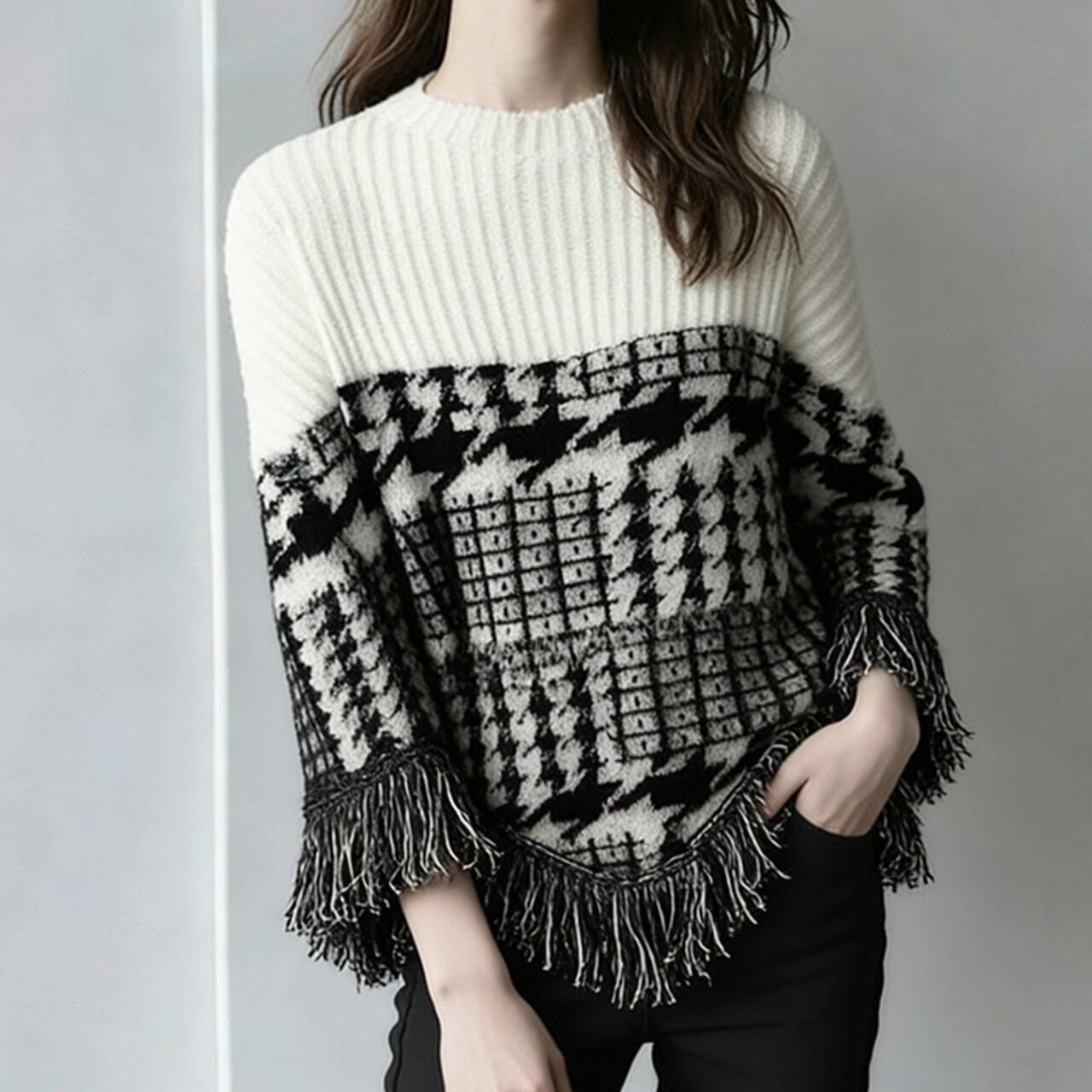 Fringed Drop Shoulder Long Sleeve Knit L00767