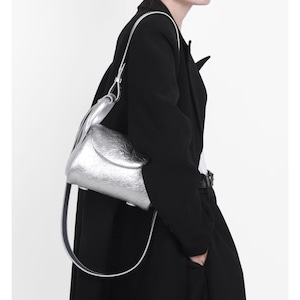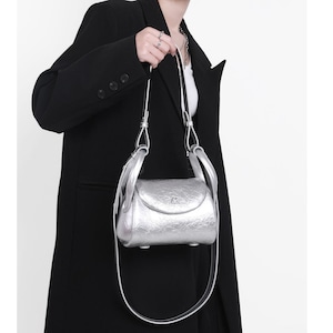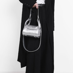 Flap-Top Silver Shoulder Bag L00792