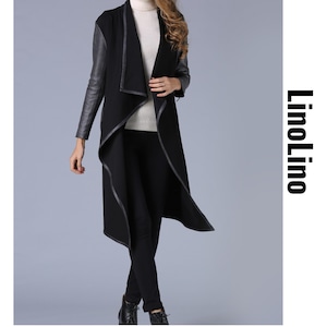 Tape Trim Long Length No Collar Jacket L00797