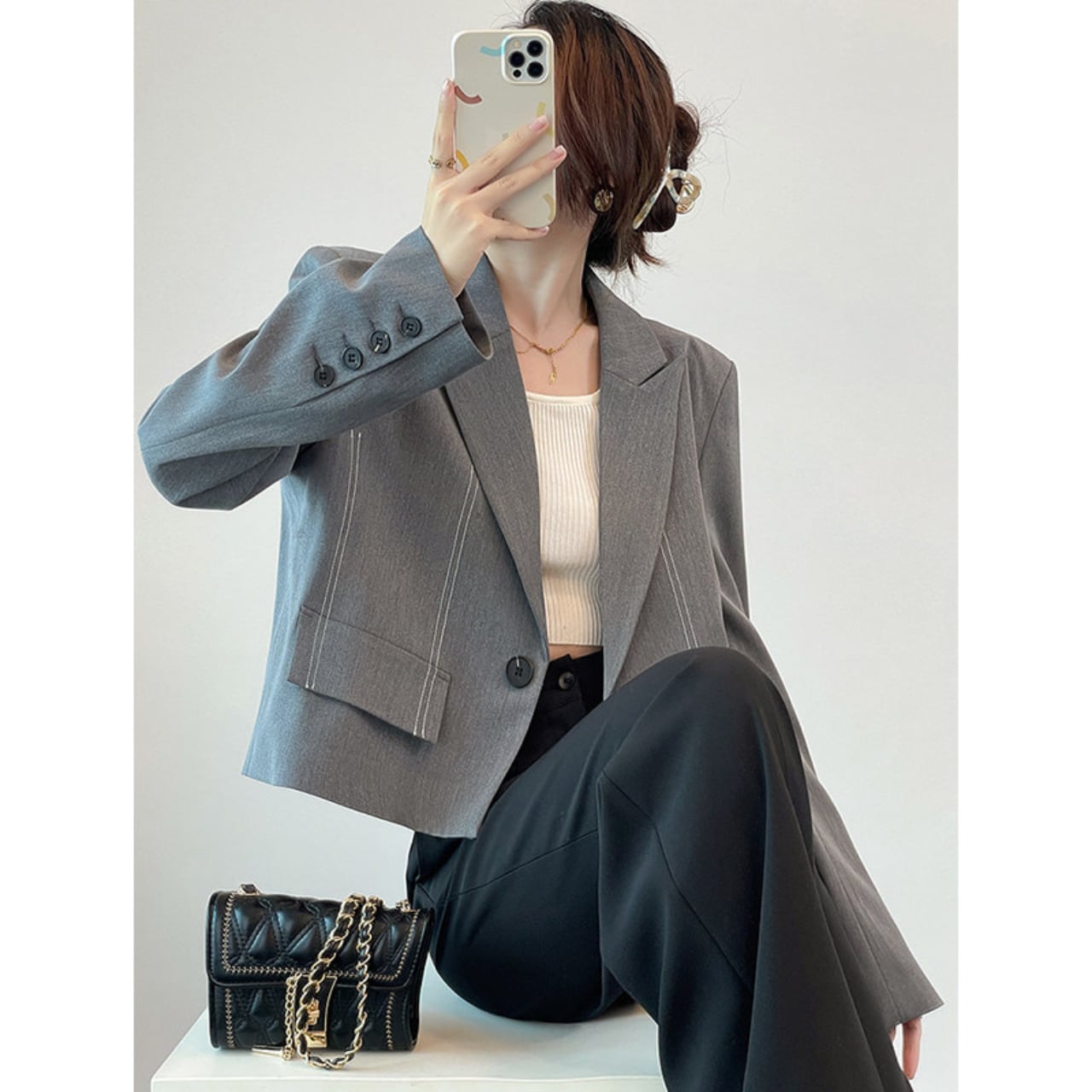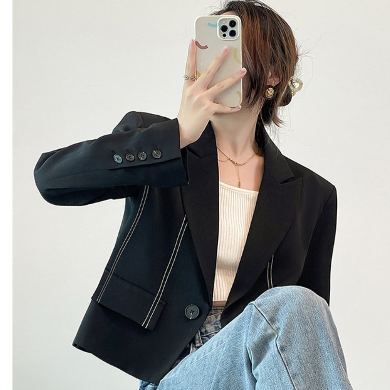 短めの丈が、スタイルアップを叶えるジャケット。