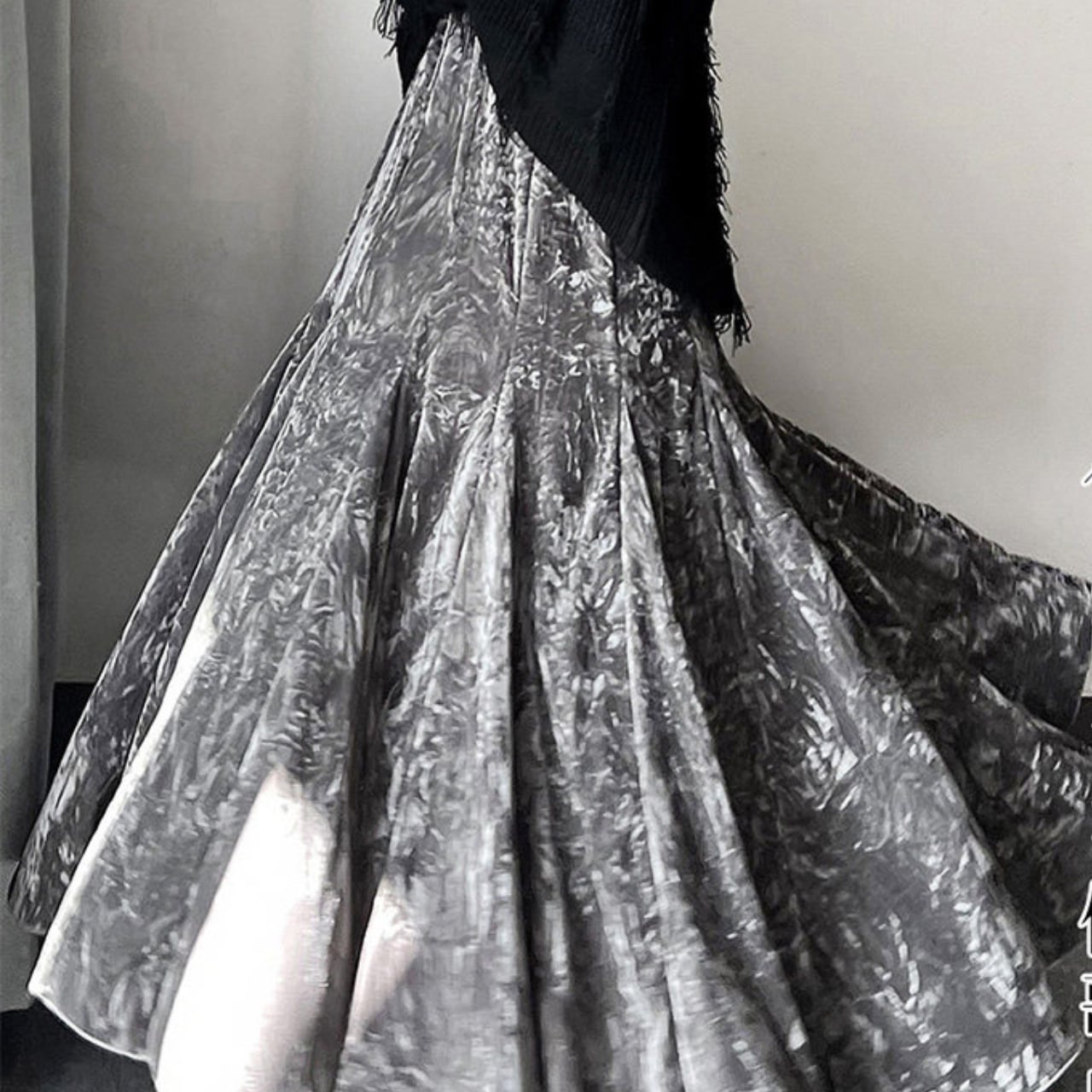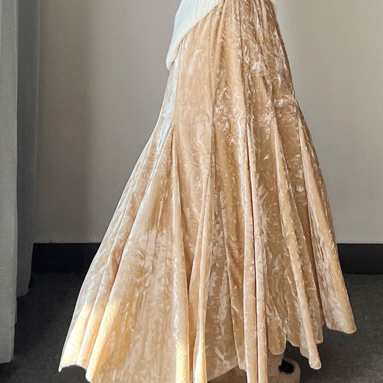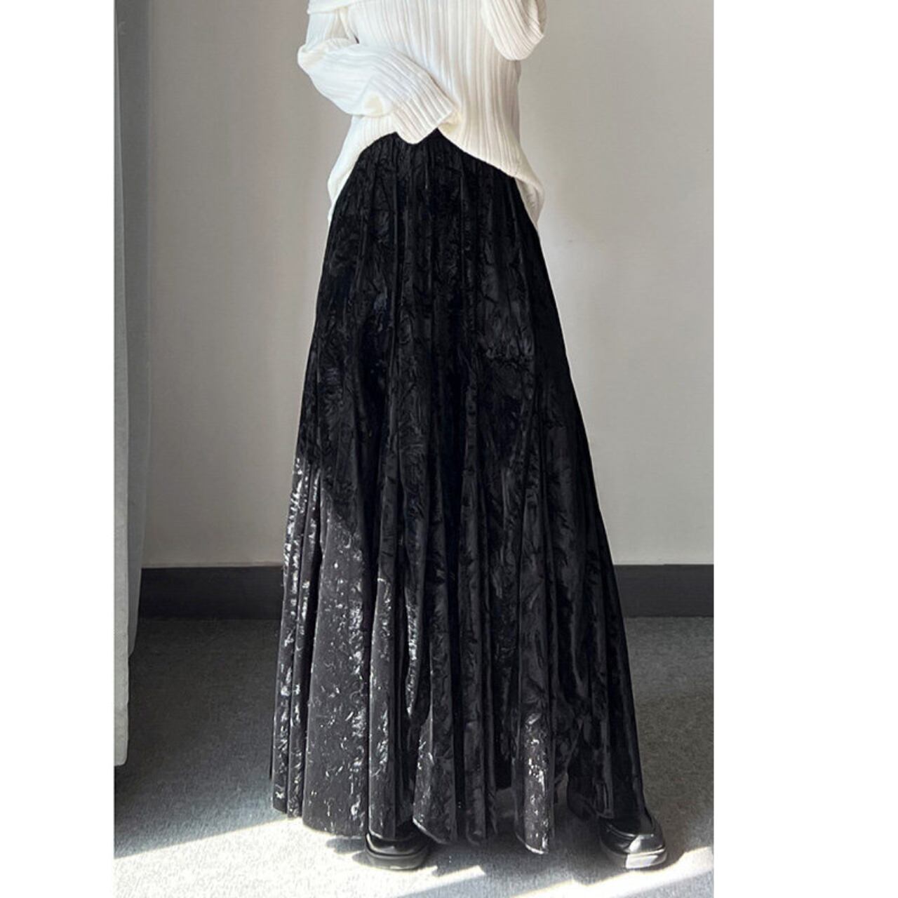 ・光を受けて表情が変わるジャガード調の素材感が、シンプルなトップスを合わせるだけでも特別な雰囲気を演出