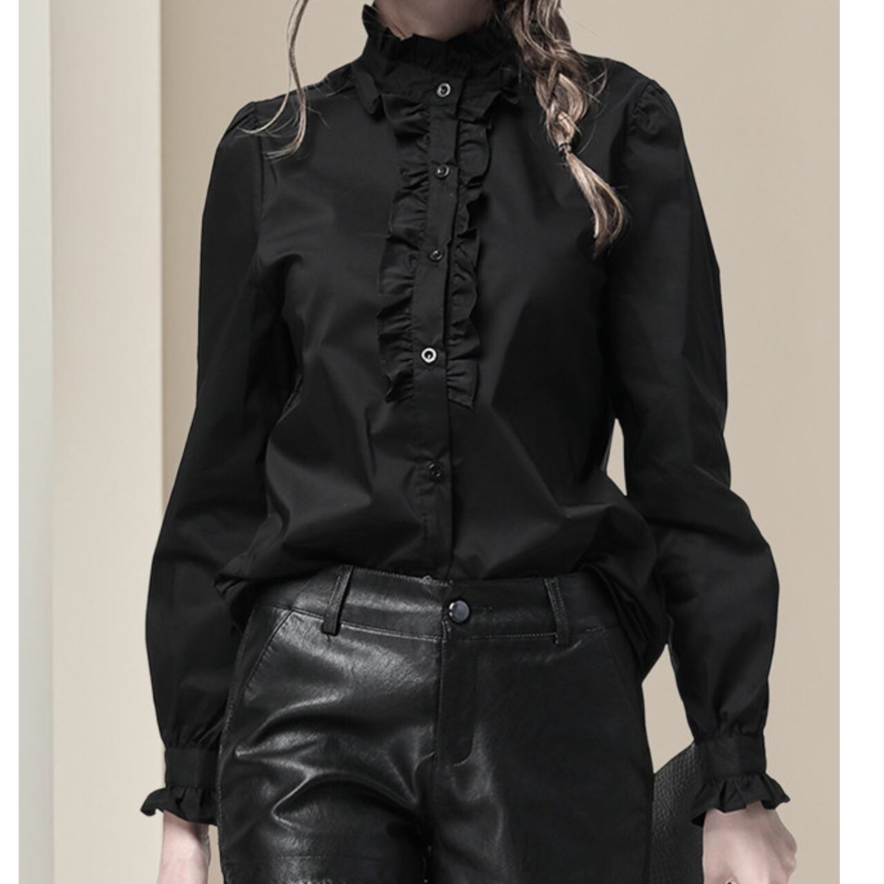 ・華やかなフリルが目を引くブラウスは、装いに上品なアクセントを加えてくれます。