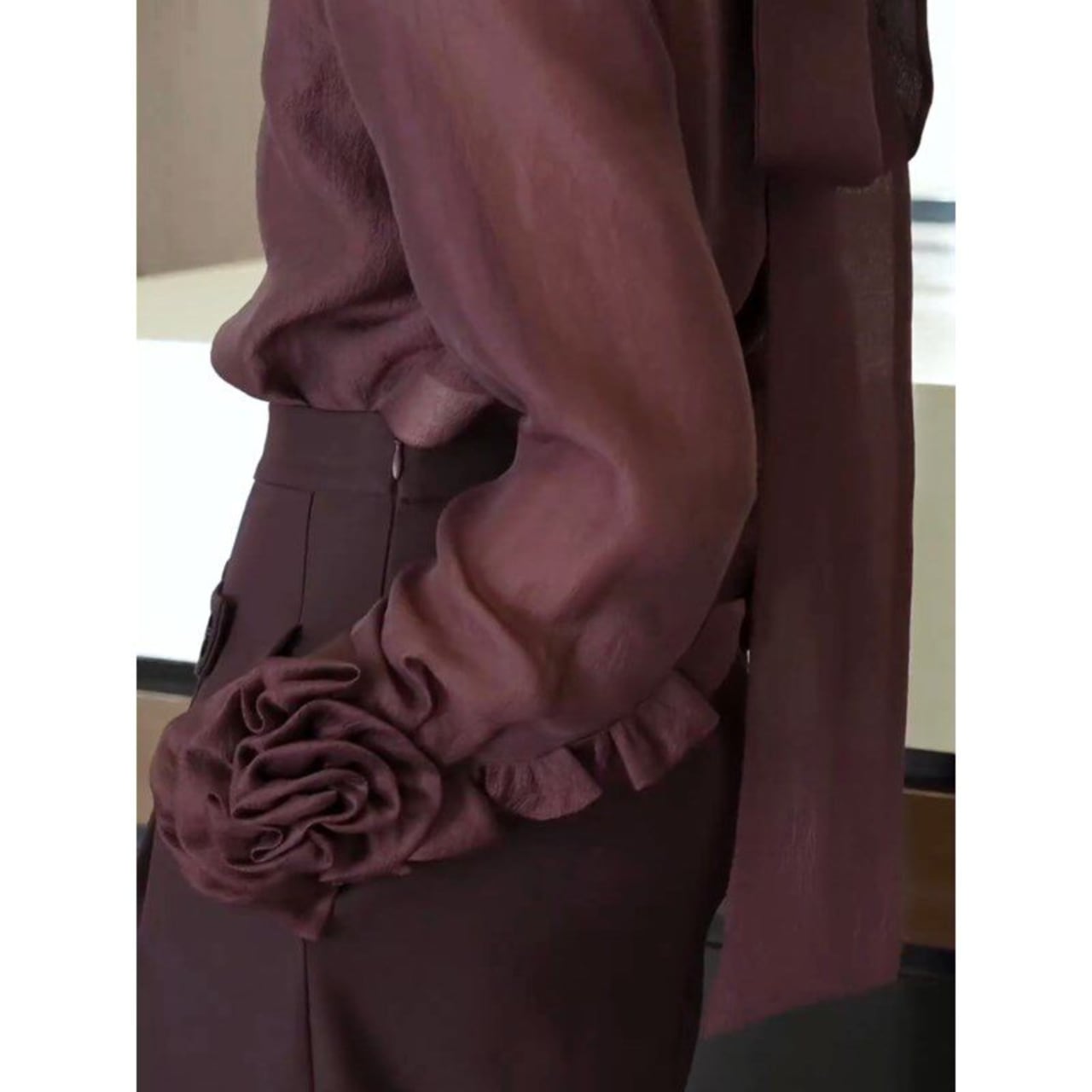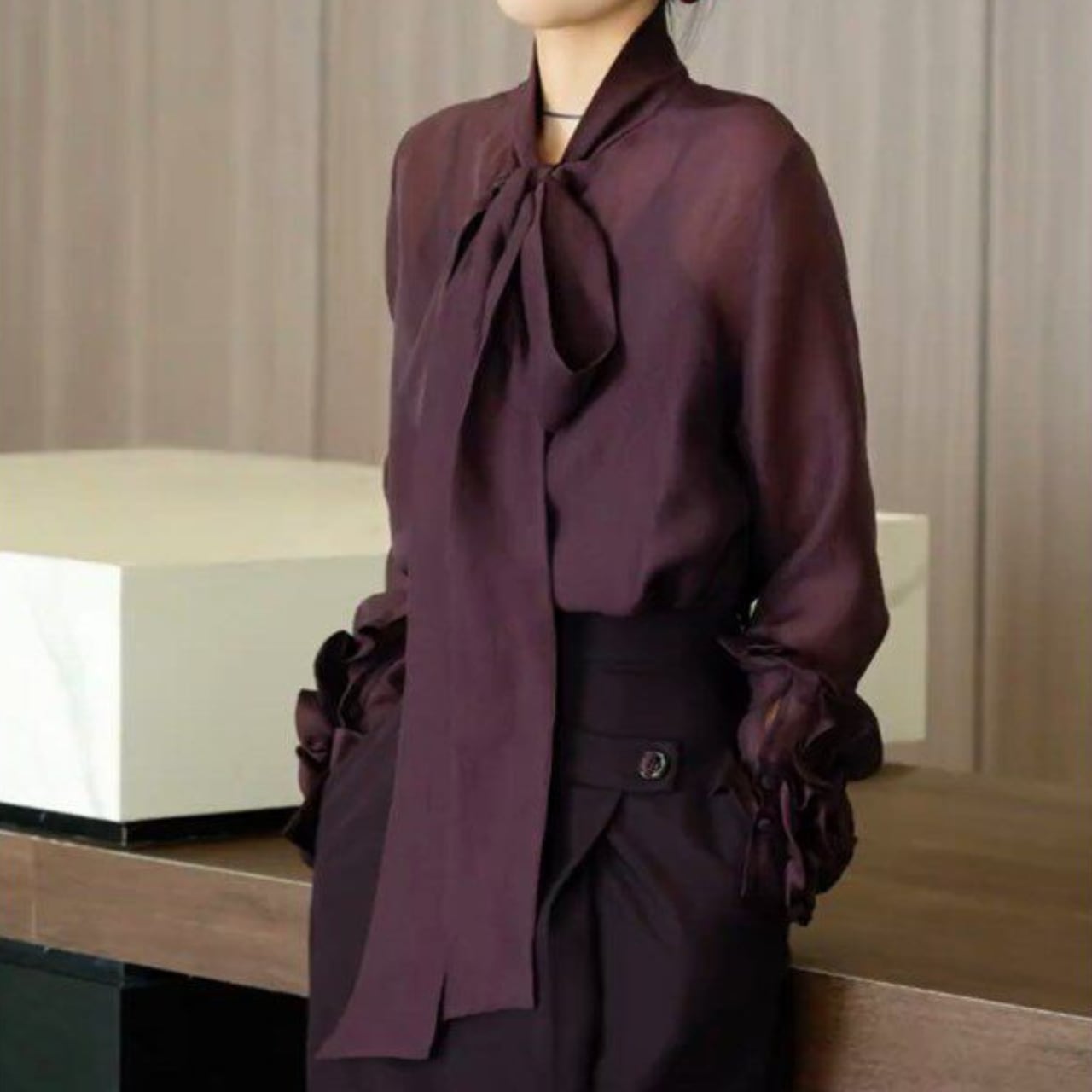 Bow Tie Long Sleeve Back Sheen Blouse L00820