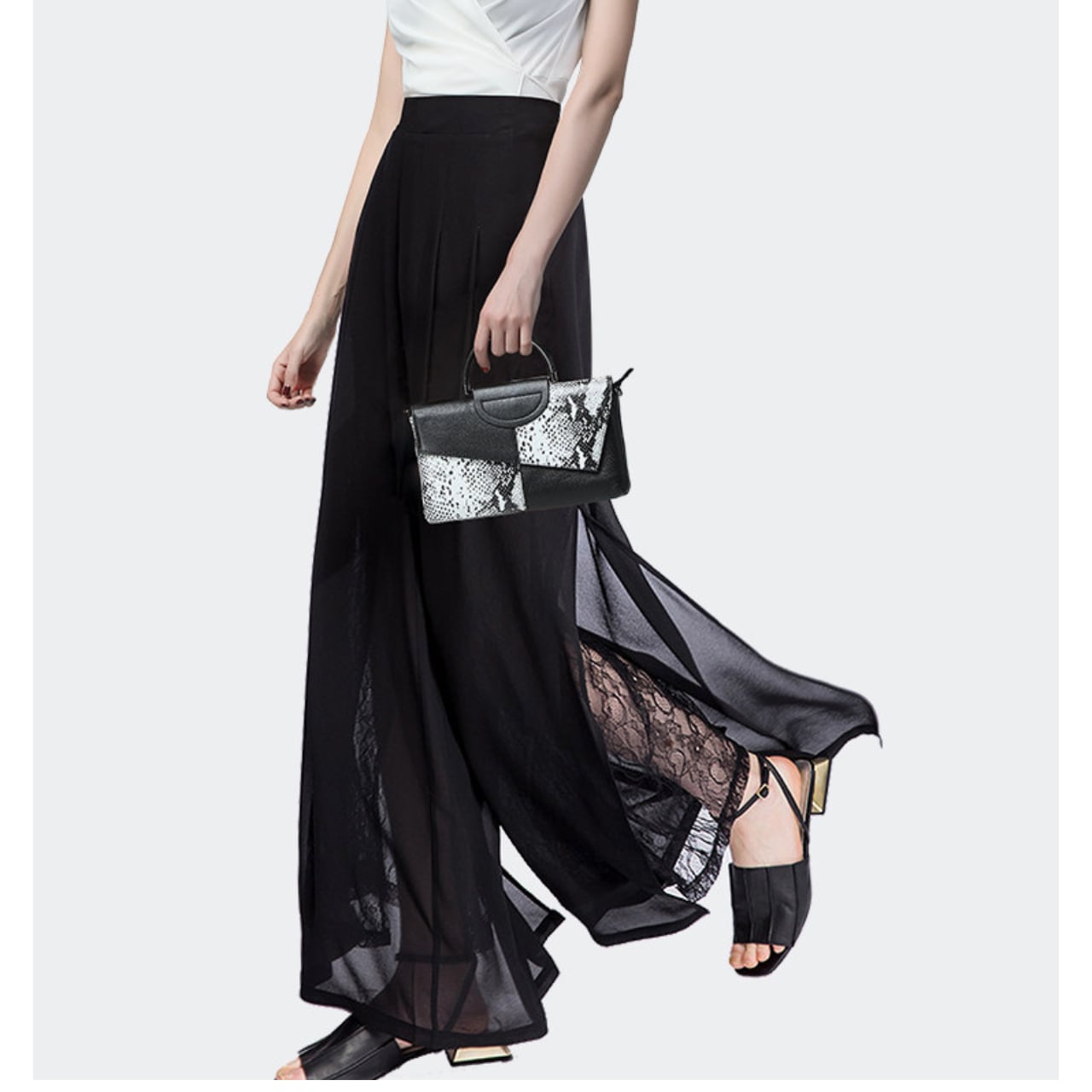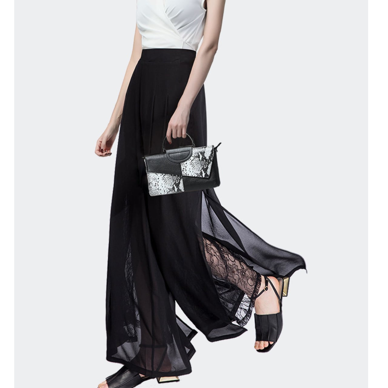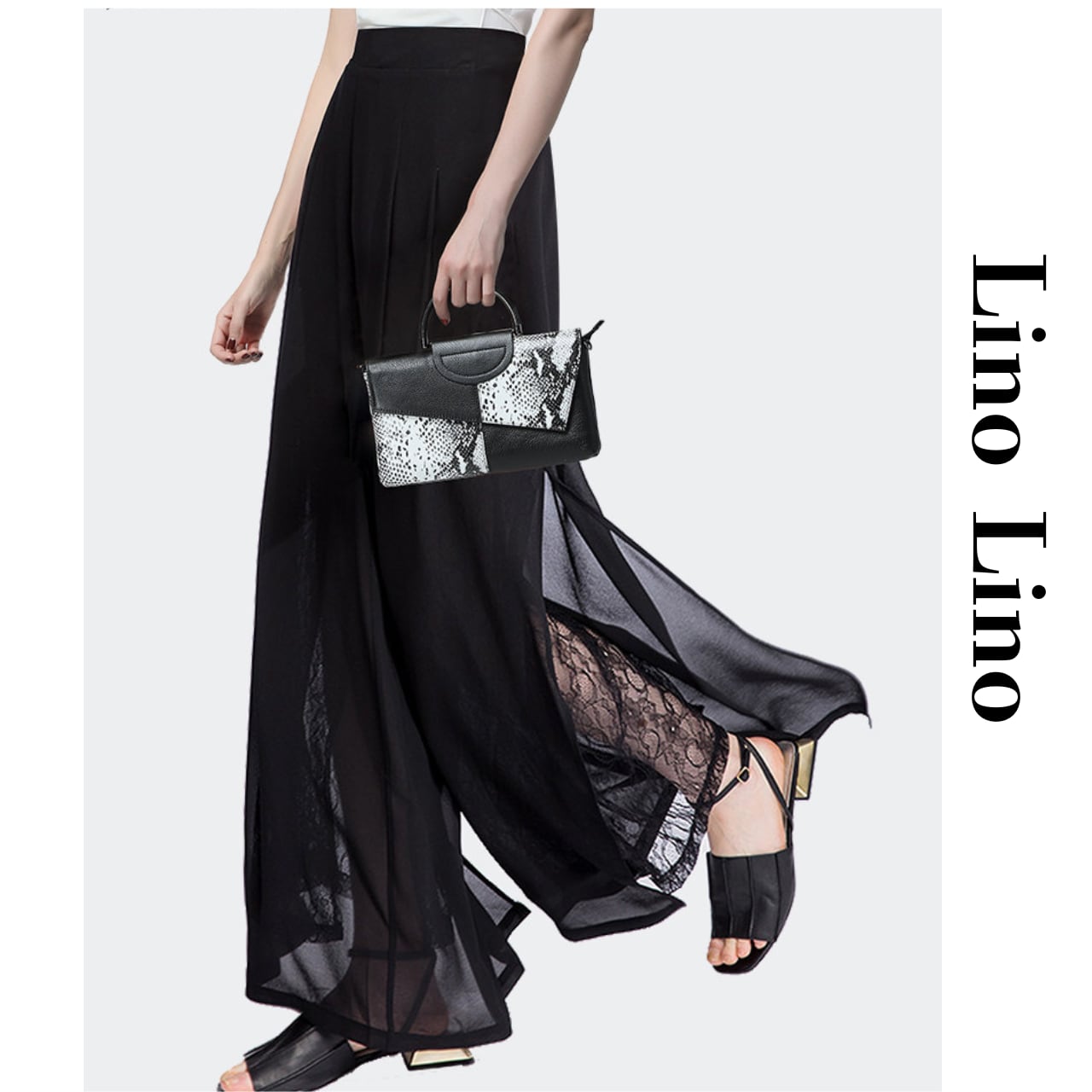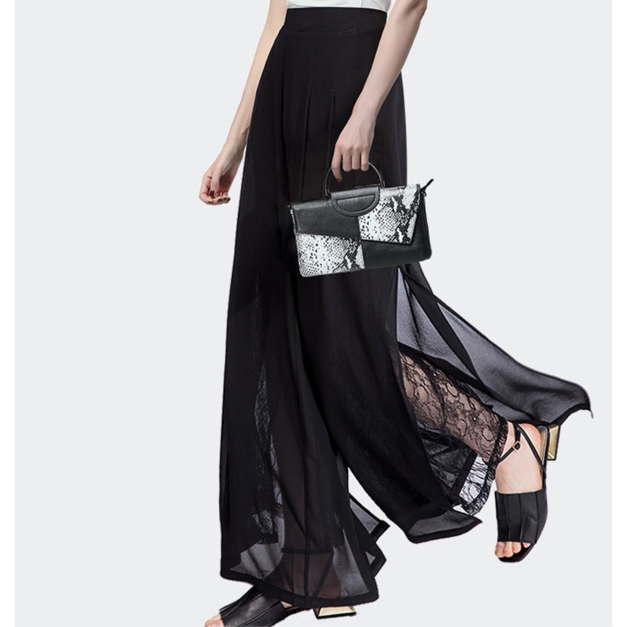 Lace Switch Wide Leg Full Length Pants L00824