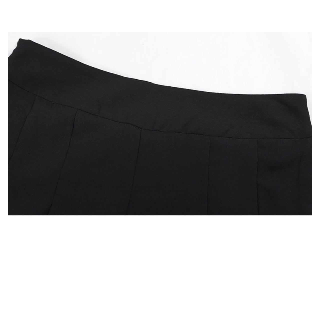・一見シンプルなブラックパンツに、裾から覗くシアー素材とレースディテールが歩くたびに揺れ印象を残します。
