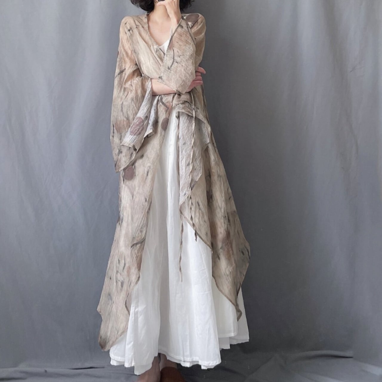 ・ワンピースやシンプルなコーデにさっと羽織るだけで、雰囲気のあるスタイルが完成。