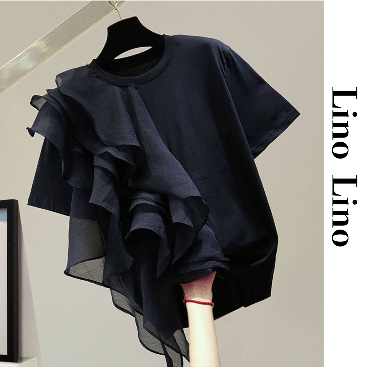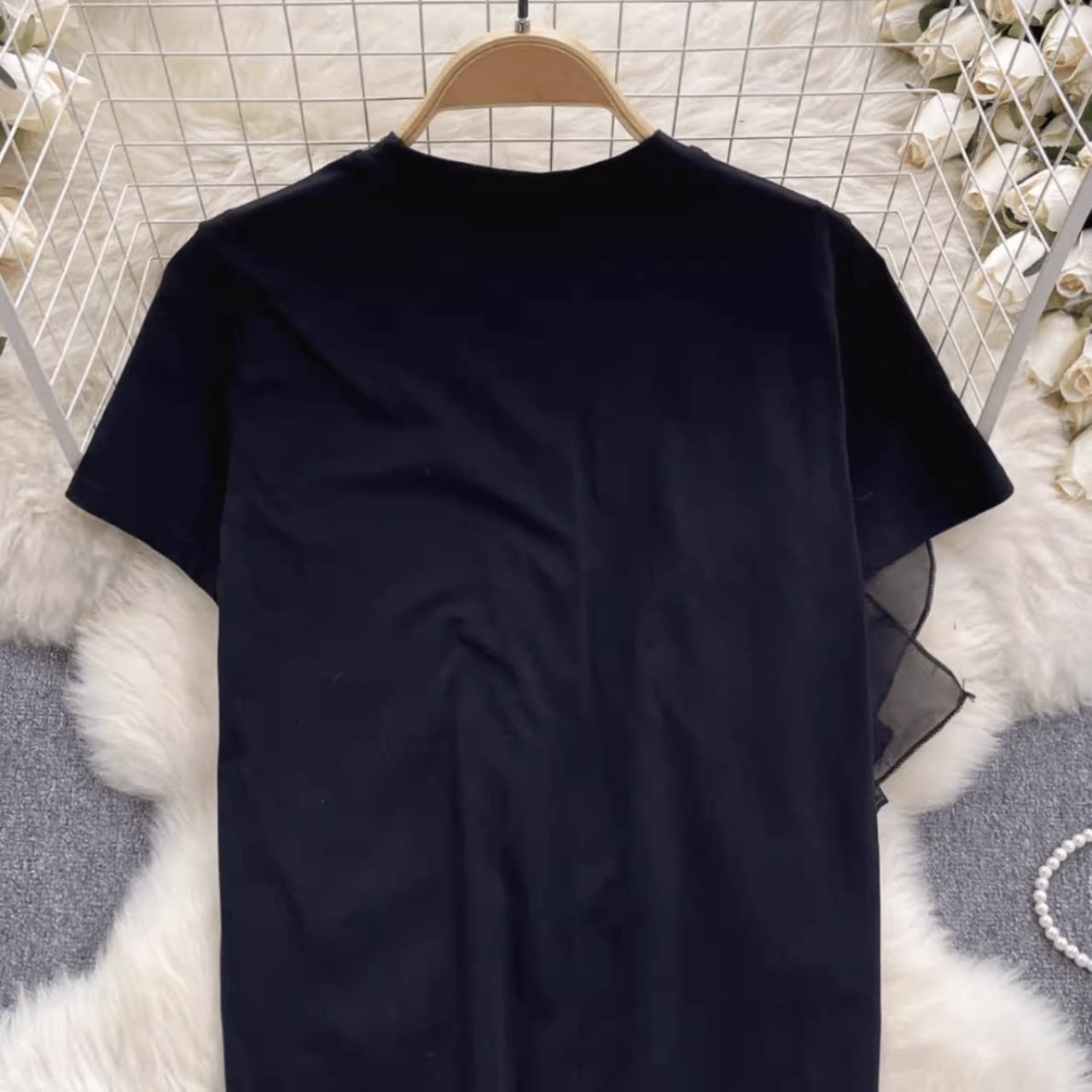 Frill Asymmetrical Short Sleeve T-Shirt L00842