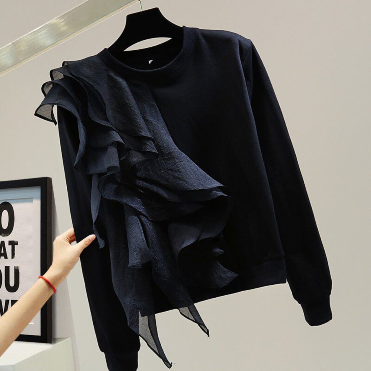 アシンメトリーなフリルが目を惹く、主役級トップスです。