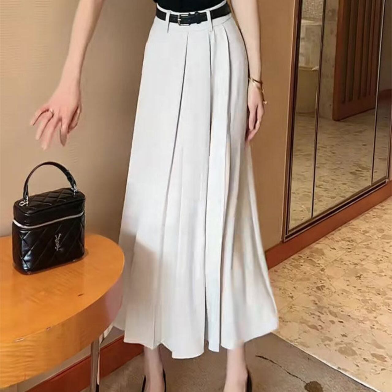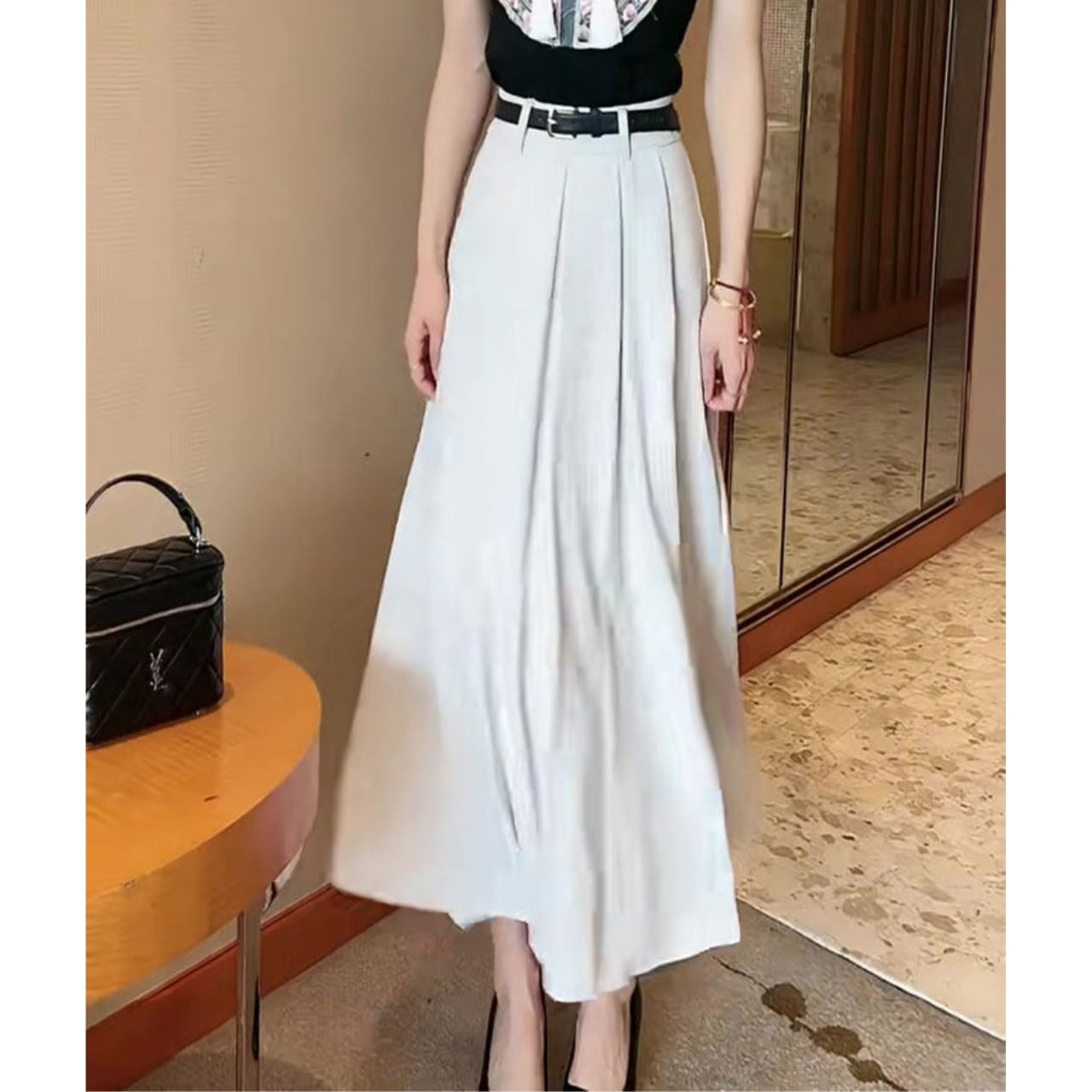 ・ウエストのベルトデザインがアクセントになった、上品なプリーツロングスカートです。