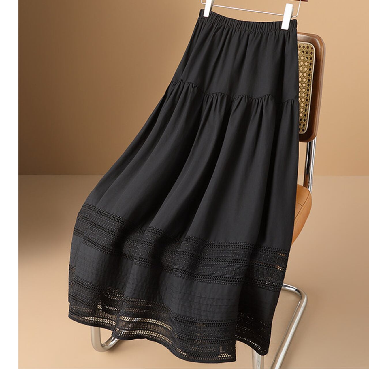 Lace Switch Tiered Maxi Skirt L00848