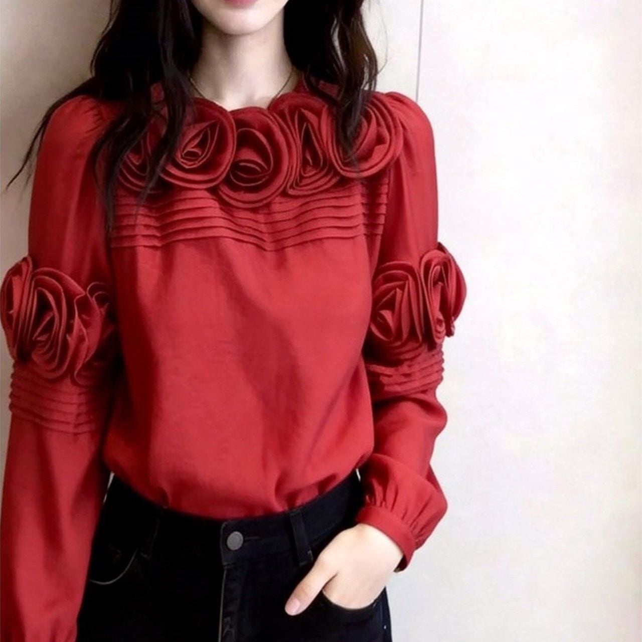 Rose Decor Hip-Length Blouse L00864