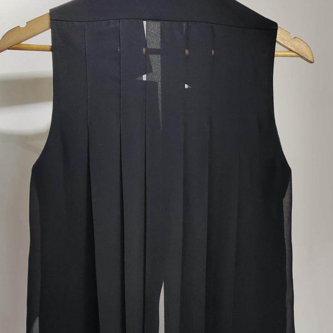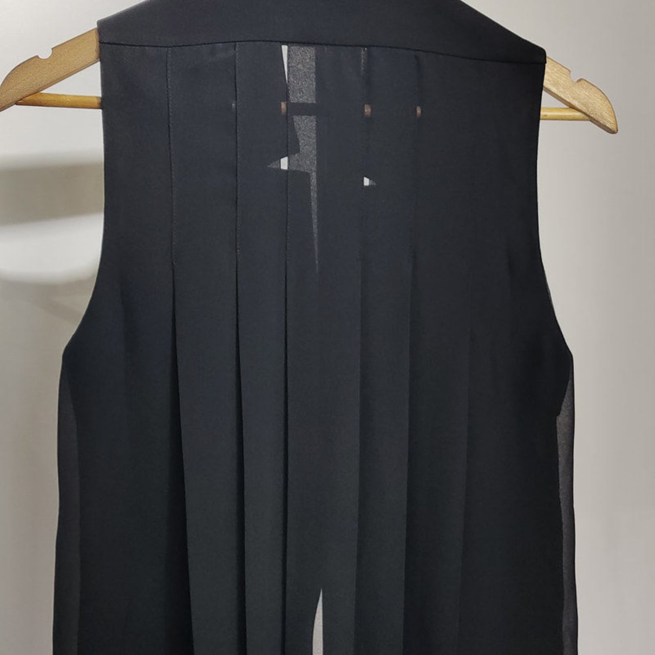 ・後ろ姿まで抜かりなく、洗練された印象を演出するベストです。