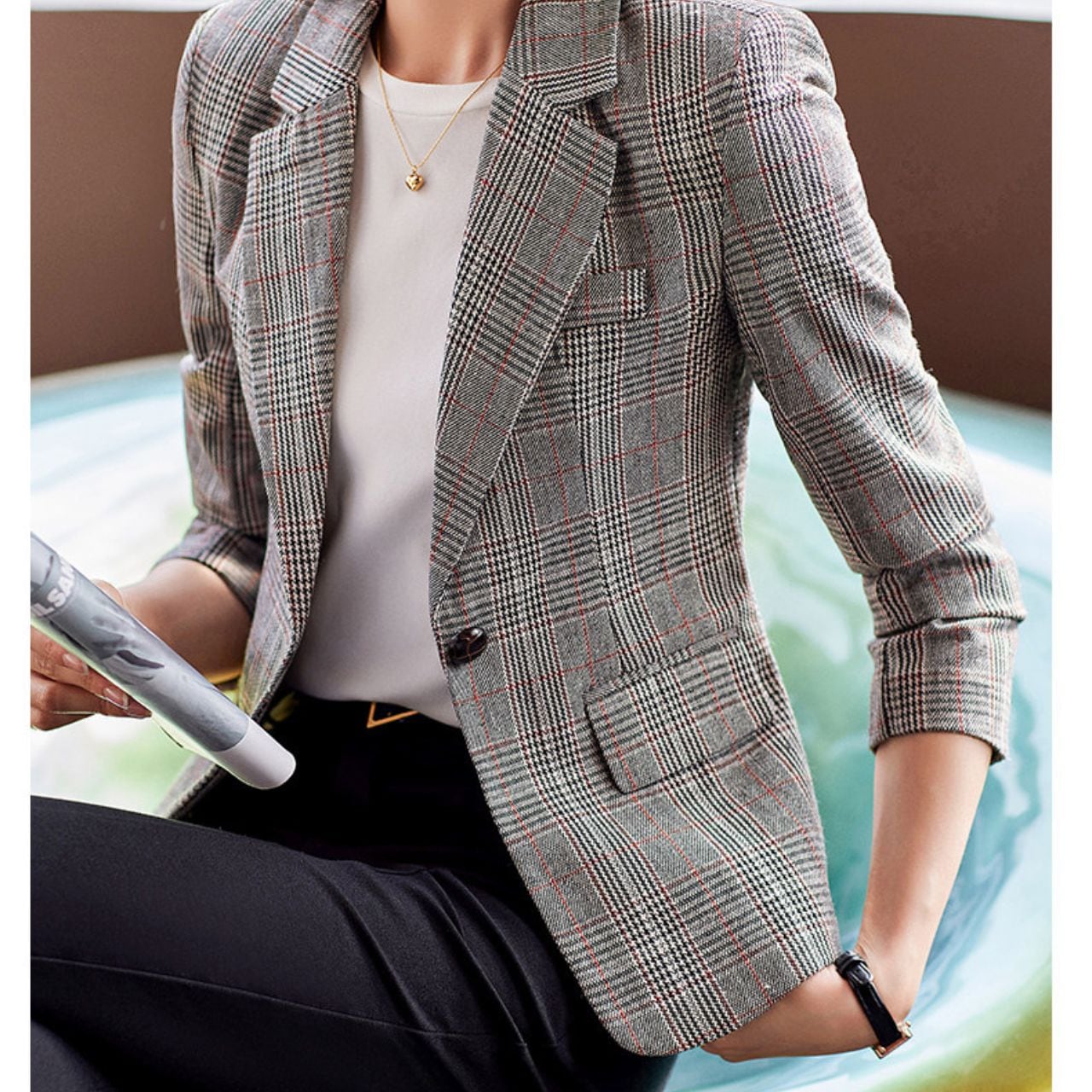 ・上品なグレンチェック柄が大人の洗練された雰囲気を演出するテーラードジャケットです。