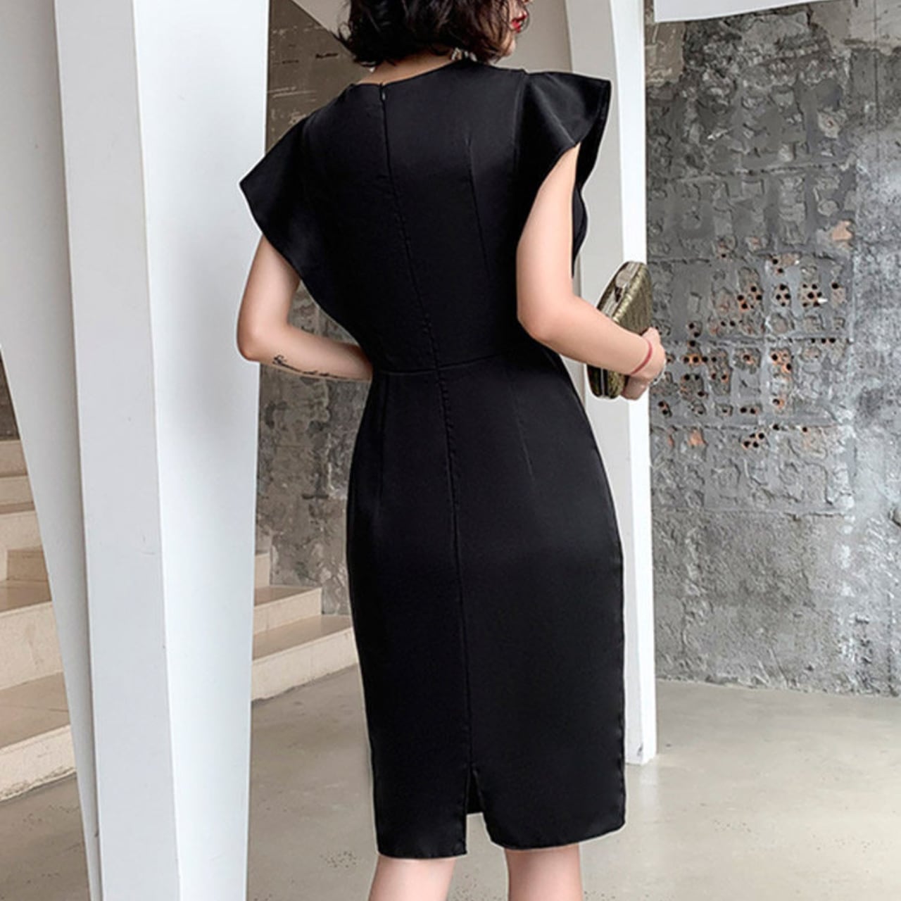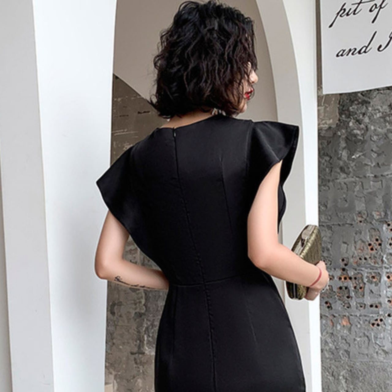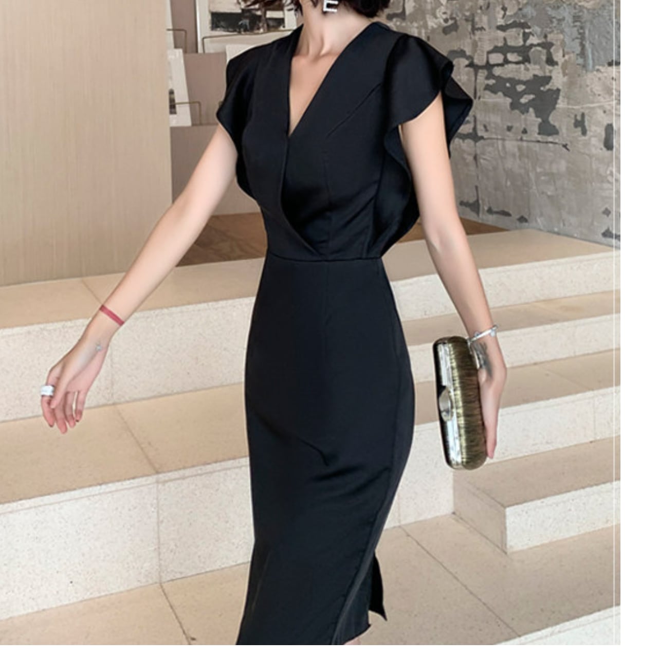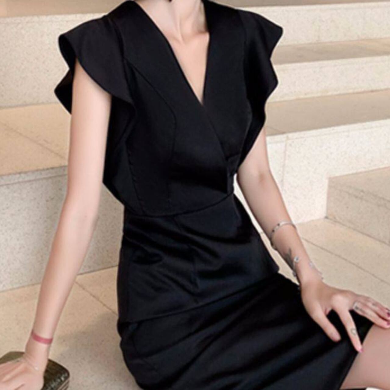 ・洗練されたシンプルさが際立つ、大人のためのブラックドレス。