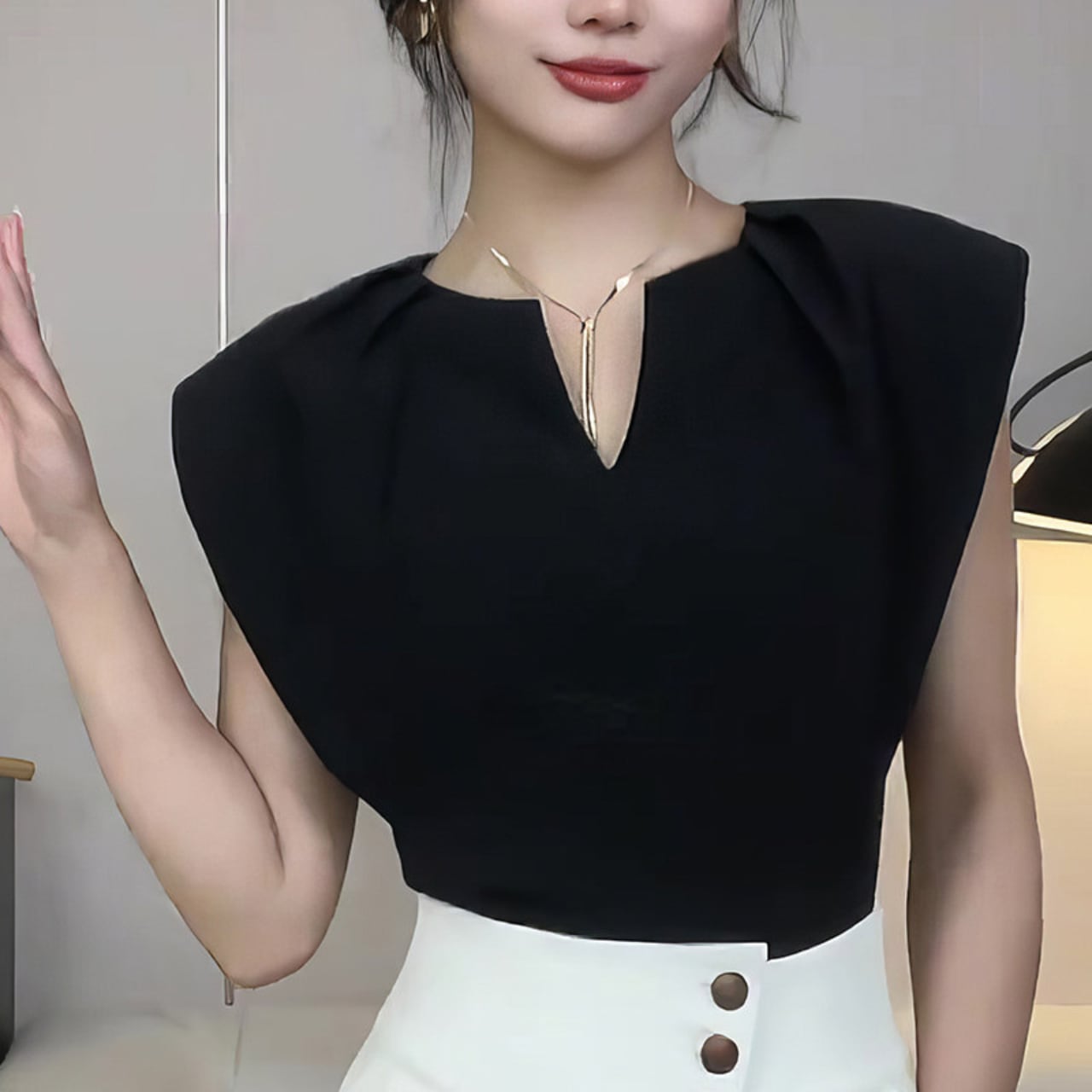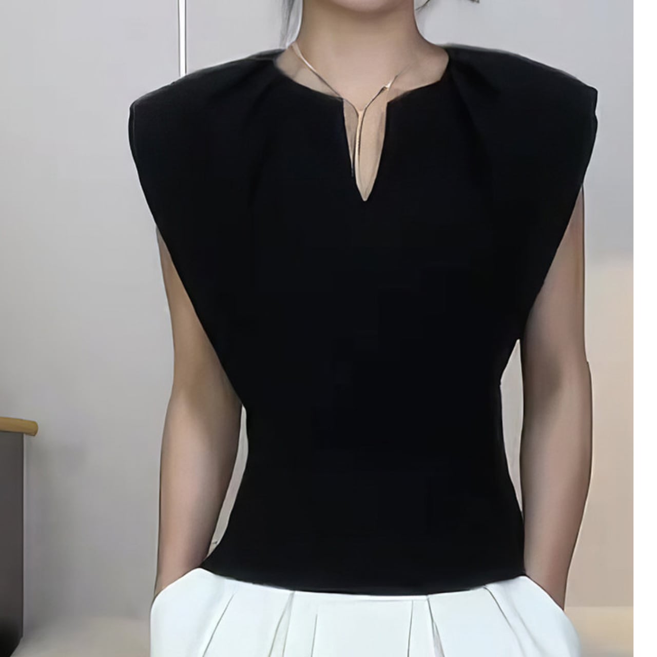 Keyhole Neck Sleeveless Tight Tops L00886