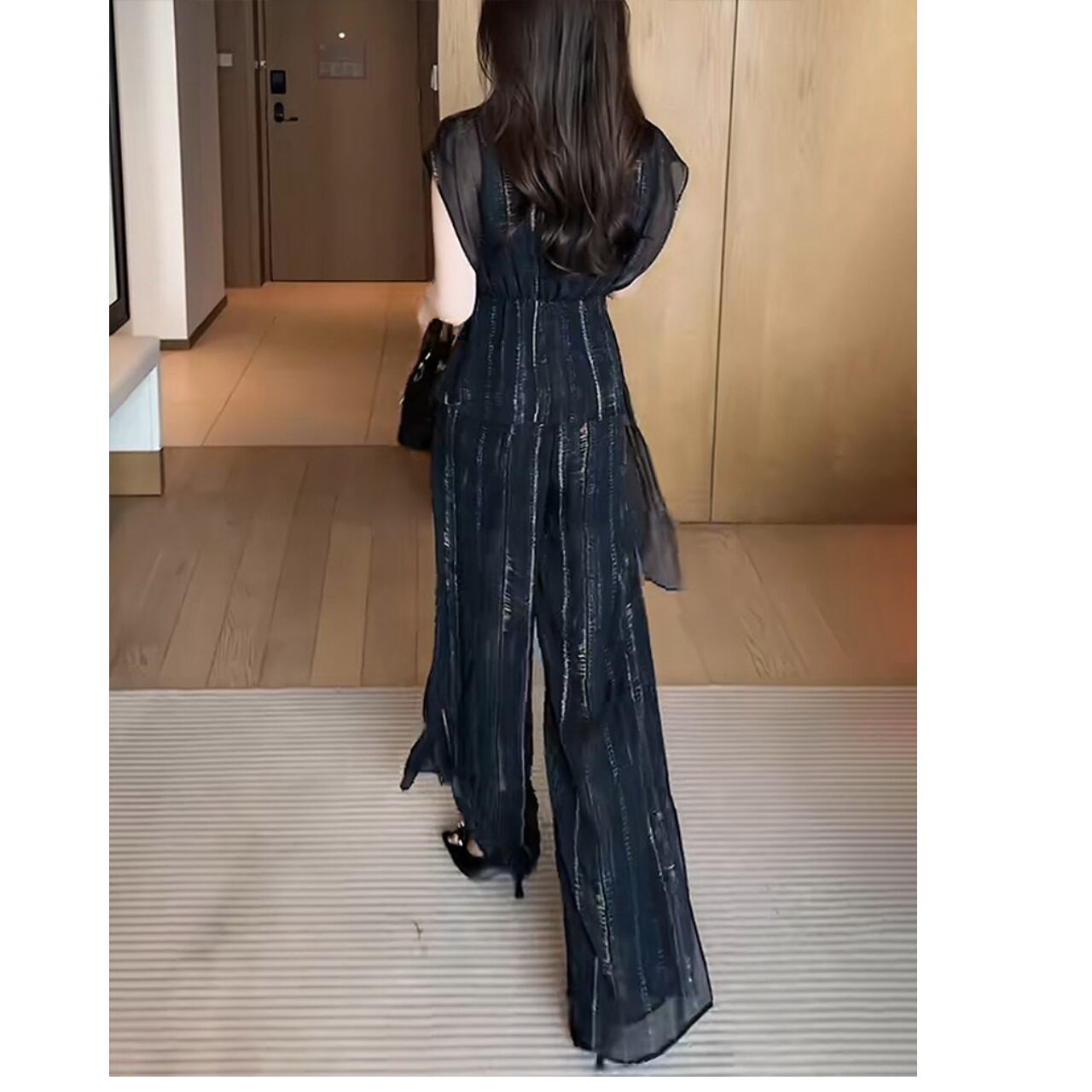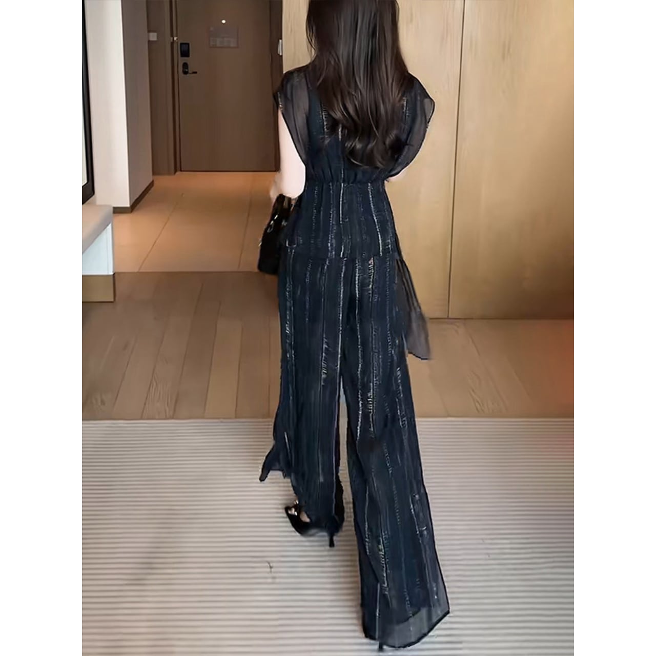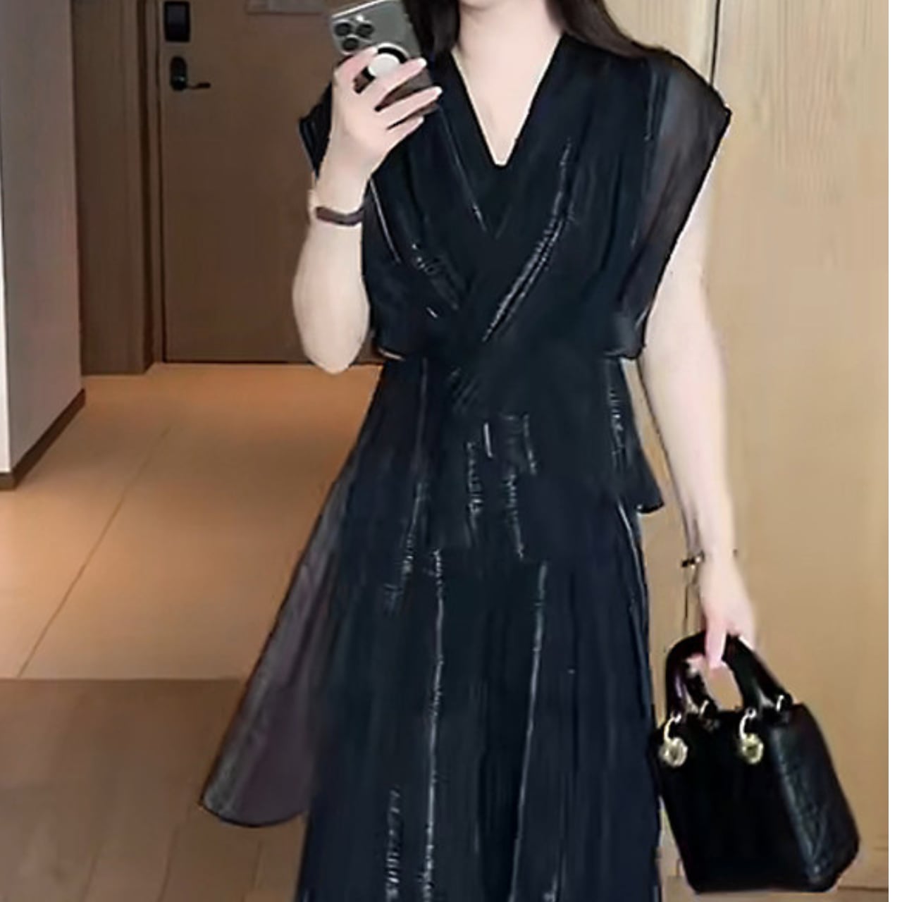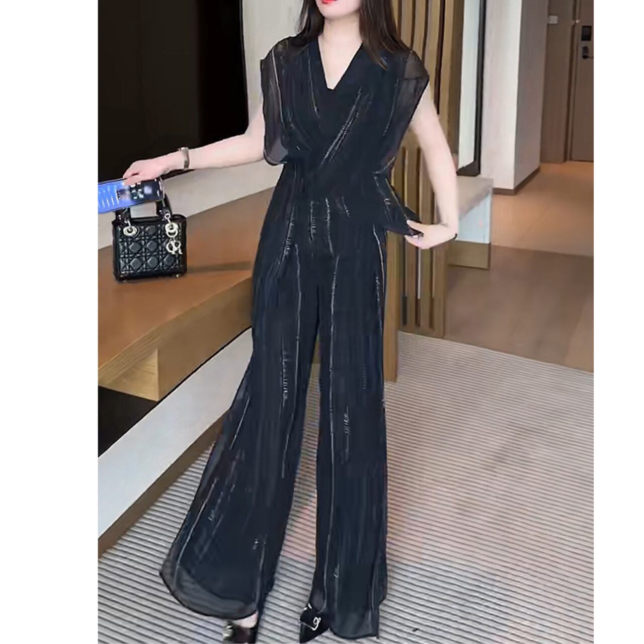 ・落ち感のあるドレープデザインと、さりげないラメの輝きが魅力のセットアップです。