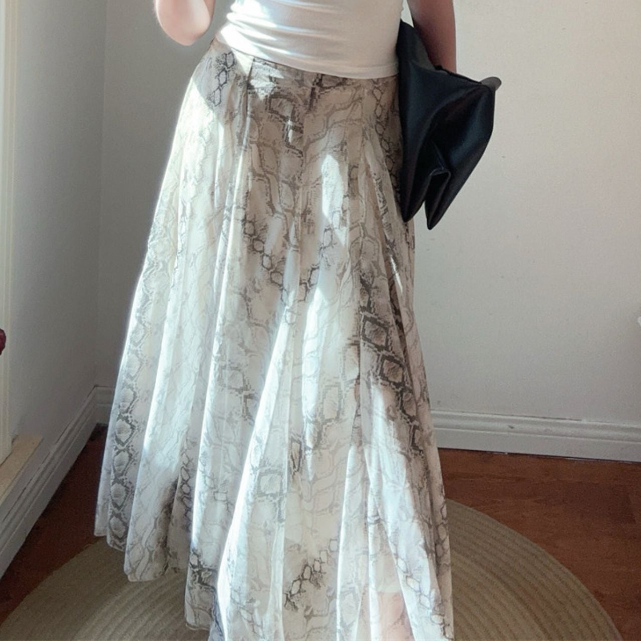 ・スカートは、動くたびに揺れるプリーツシルエットに、印象的なパイソン柄をプラス。シンプルになりがちなコーデに、しっかりとアクセントを加えてくれます。
