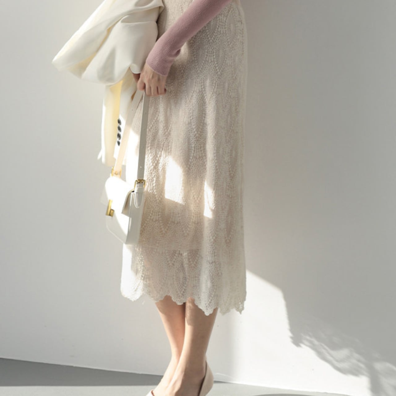 シンプルなトップスと合わせるだけで、上品な着こなしが完成します。