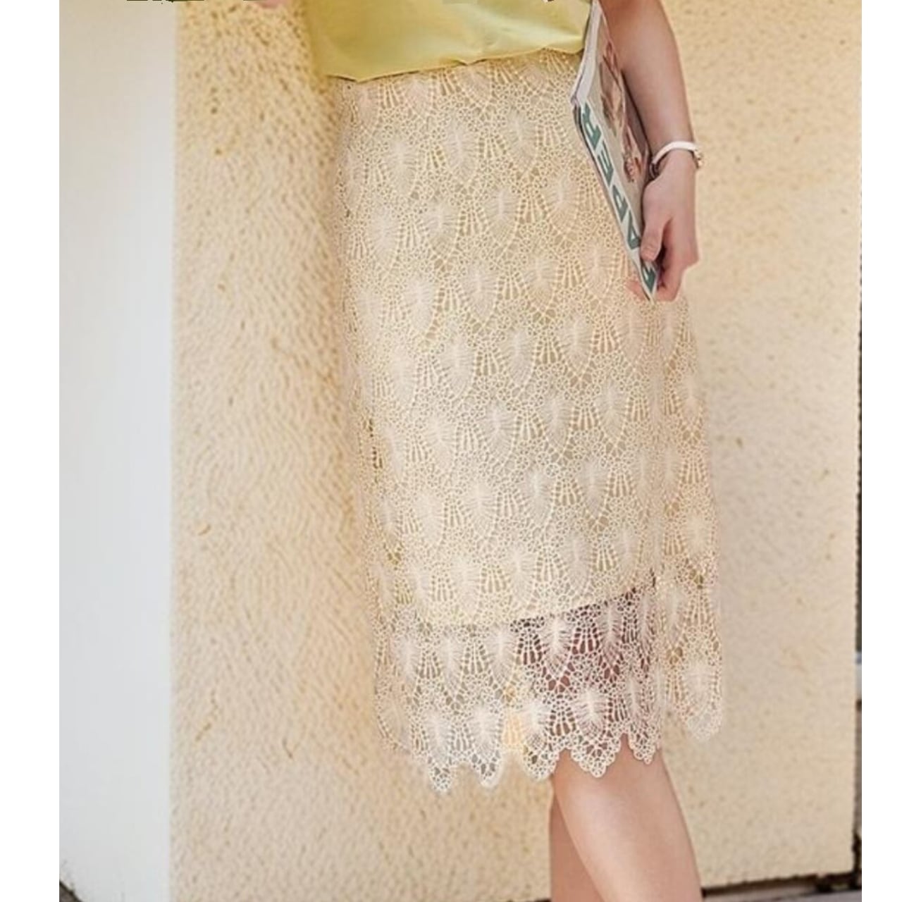 繊細なレースが、大人の女性らしさを引き立てるスカート。