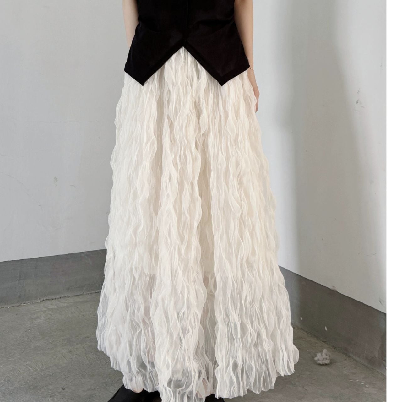 【2set】Pearl Detail Top & Sheer Skirt L00919