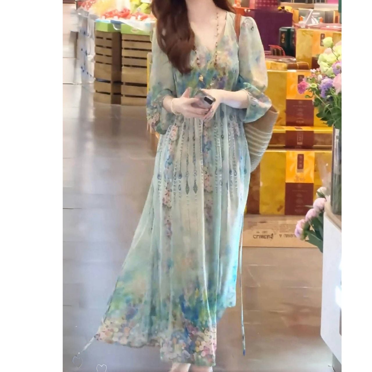 ・やわらかな花柄が印象的な、軽やかに纏えるロングワンピースです。