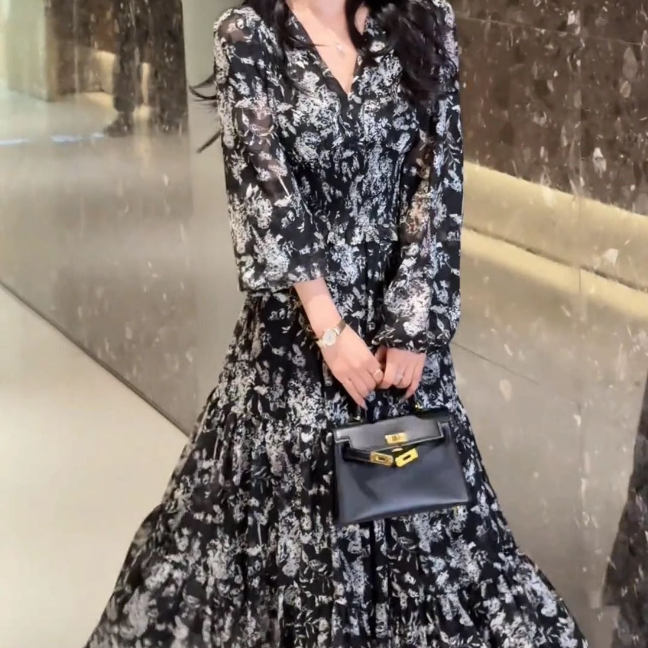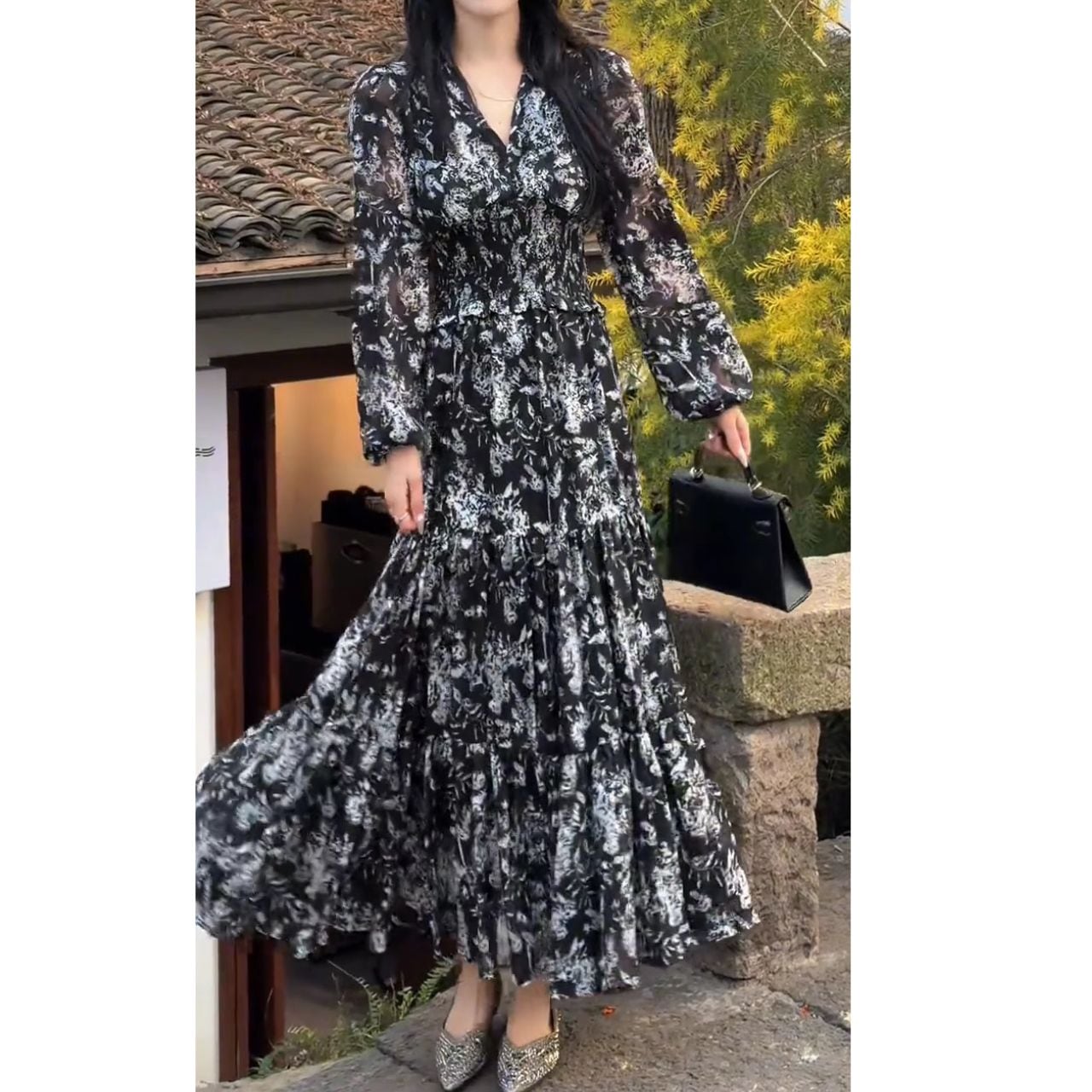 ・歩くたびに、優雅に揺れるマキシ丈のワンピース。